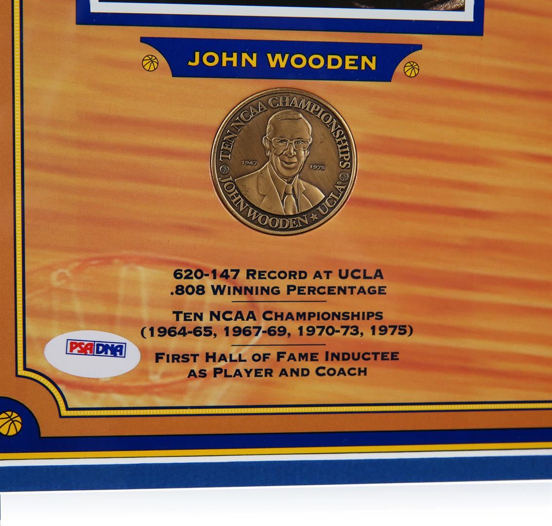 One PSA Certified John Wooden and Bill Walton Pyramid of Success framed collage. Dimensions: 23"x32". PSA Certified.