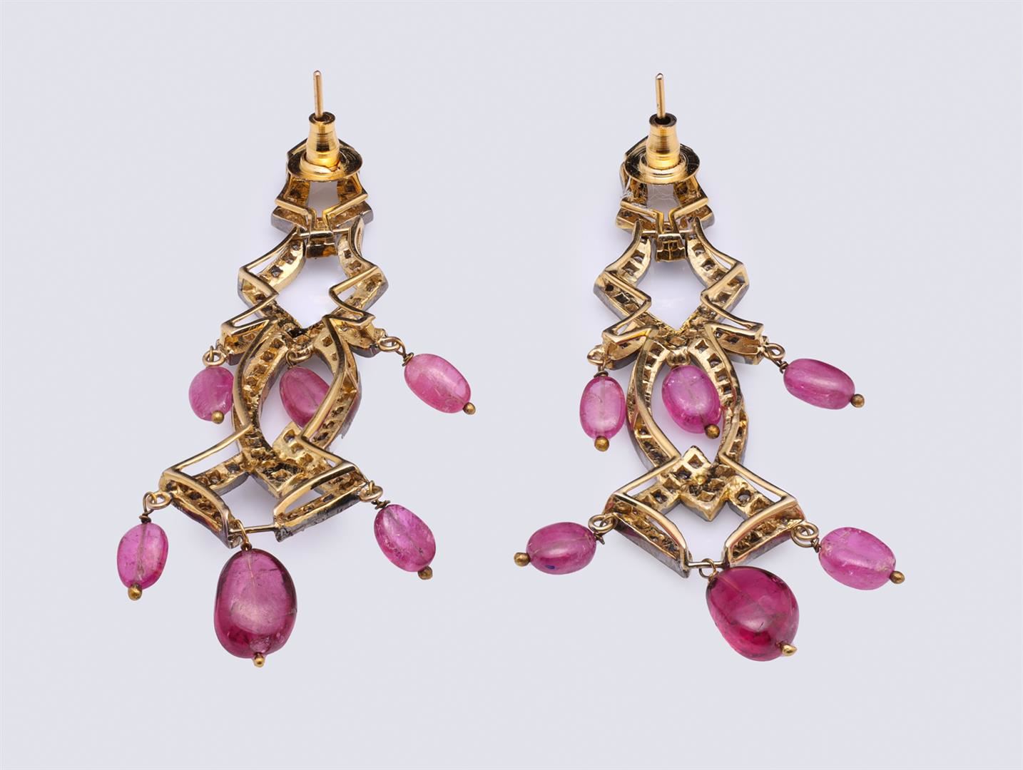 Pair of Mogul Style Silver Topped Gold Tourmaline & Diamond Earrings containing diamonds and tourmaline weighing approximately 10.0 cts. Total weight is 19.5 gm. Estimated retail value $1,000.