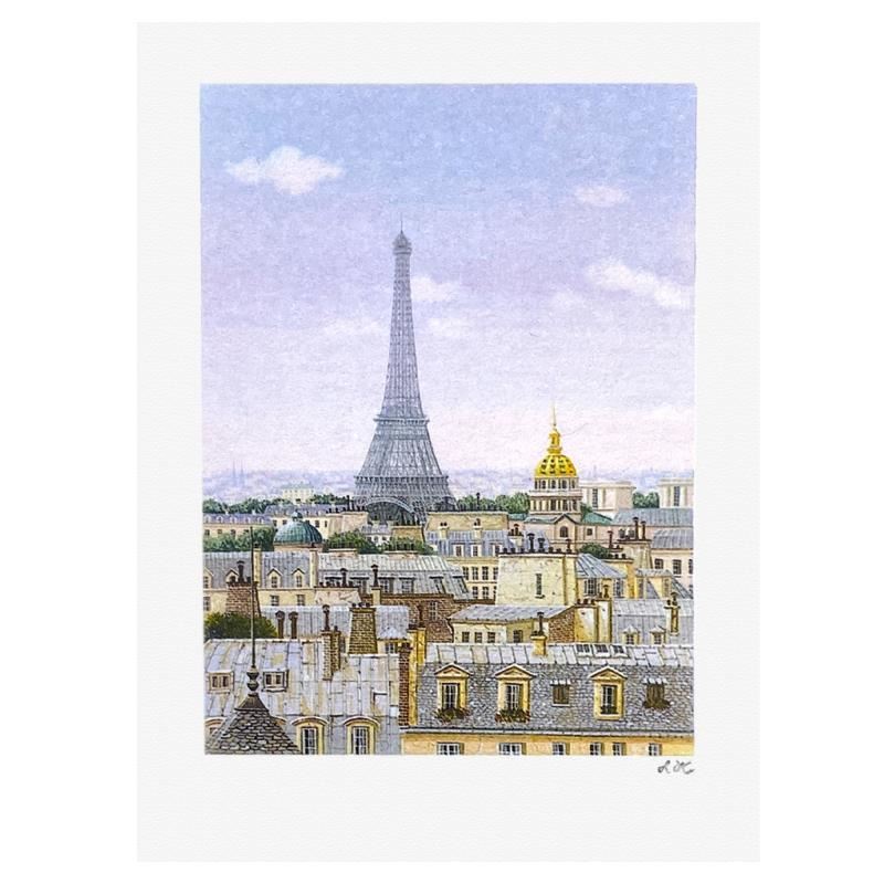 "Paris Daybreak" is a limited edition lithograph on paper by Liudmila Kondakova, hand signed by the artist. Includes Letter of Authenticity. Measures approx. 7" x 6" (border), 3" x 2" (image).