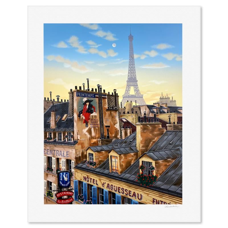 "Paris Morning (Rooftops of Paris)" is a limited edition serigraph on paper by Liudmila Kondakova hand signed by the artist. Includes Letter of Authenticity. Measures approx. 31" x 25" (border) 25.5" x 20" (image).