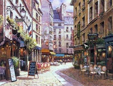 Parisian Cafe by Sam Park. Unframed and stretched on Limited Edition enhanced canvas. Comes with certificate of Authenticity! Dimension (inches): 30x40