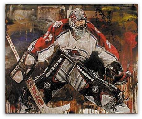 Patrick Roy, signed by Patrick & artist Stephen Holland. It's a hand embellished 30" x 37" giclee, AP 16/20, stretched canvas w/ certificate
