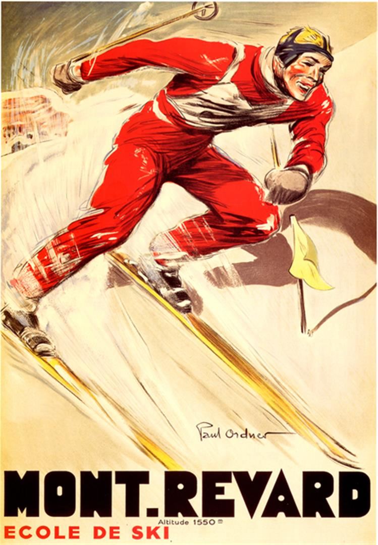 Artist: Paul Ordner Title: Mont Revard Medium: Fine Art Giclee on Archival Canvas Image Size: Approximately 32 inches x 22 inches Unframed on Unstretched Canvas Details: This is a beautiful Reproduction Giclee on Archival Canvas. Paul Ordner (1900-1969) Very early, his talents as a designer were noticed during his schooling at the Rollin school