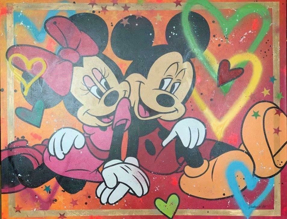 Paulina Del Mar "Minnie and Mickey Mouse Huge Canvas" Original One of Kind Mixed Media Acrylic on Stretched Canvas, Hand Signed Dimensions: 48 x 60 inches
