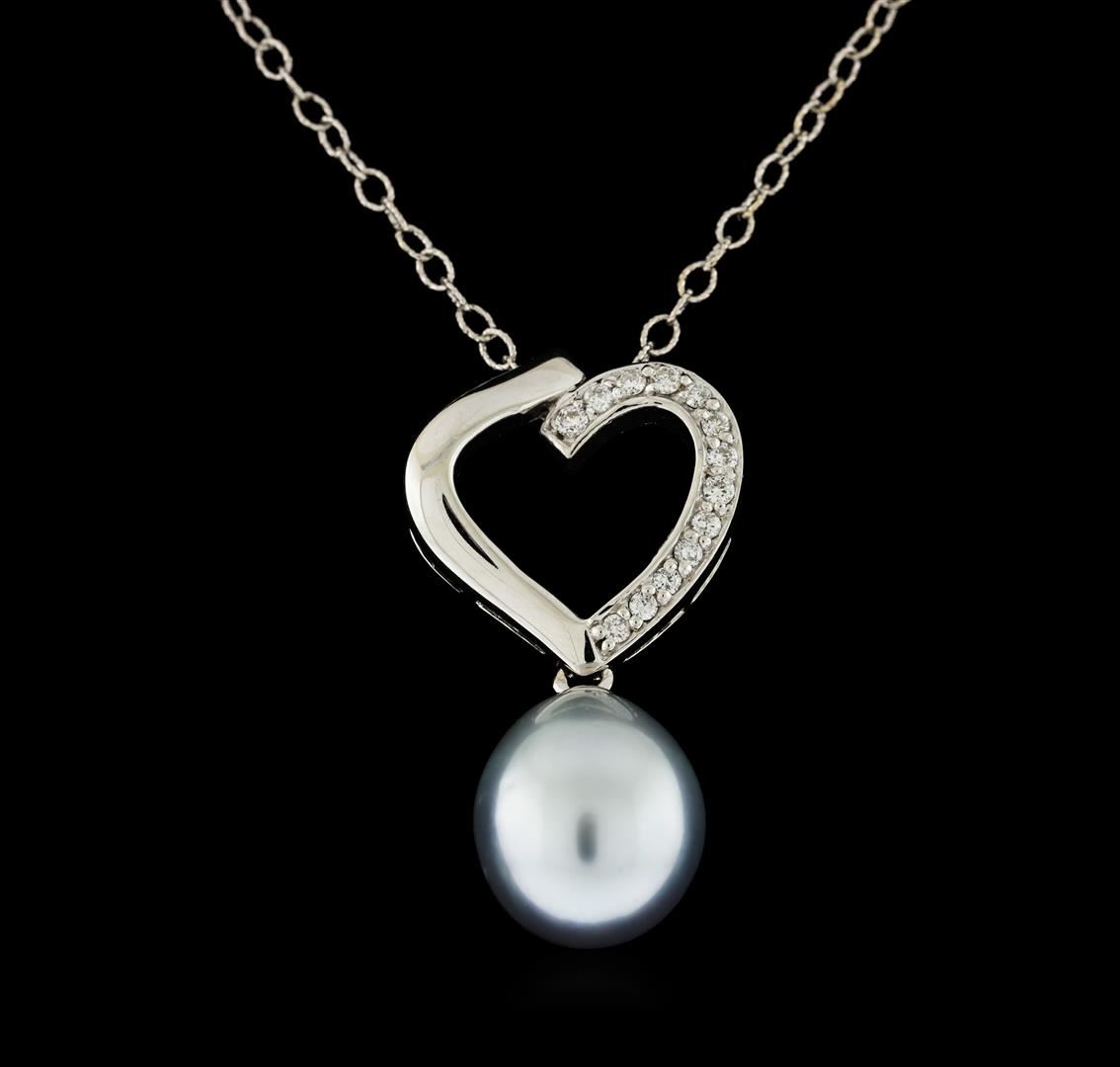 One pendant with chain : 14KT white gold weighing 2.80gm containing pearl and diamonds weighing 0.18ctw.