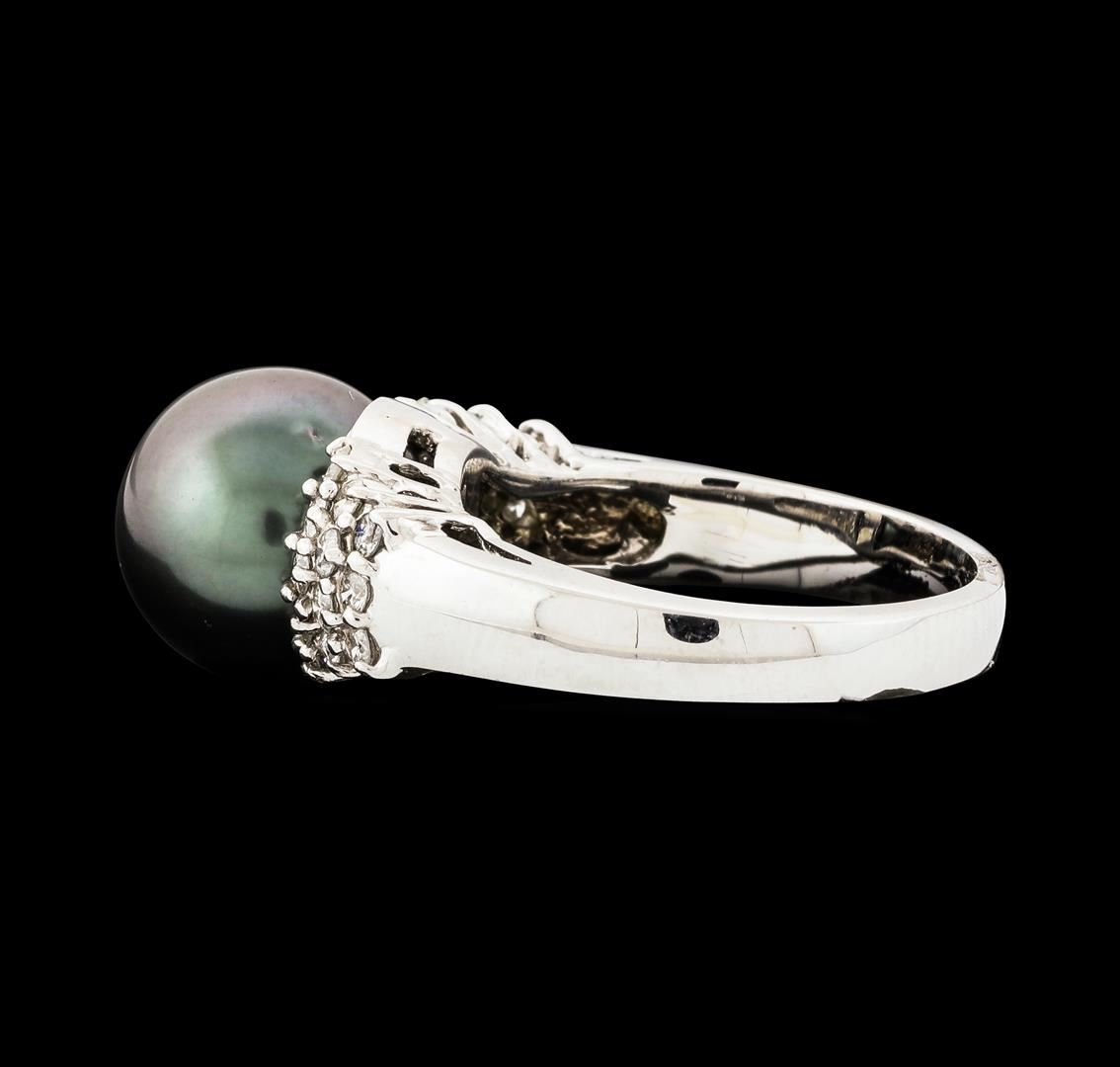 One ring : 14KT white gold weighing 4.98gm containing one pearl with side diamonds weighing 0.1.42ctw.