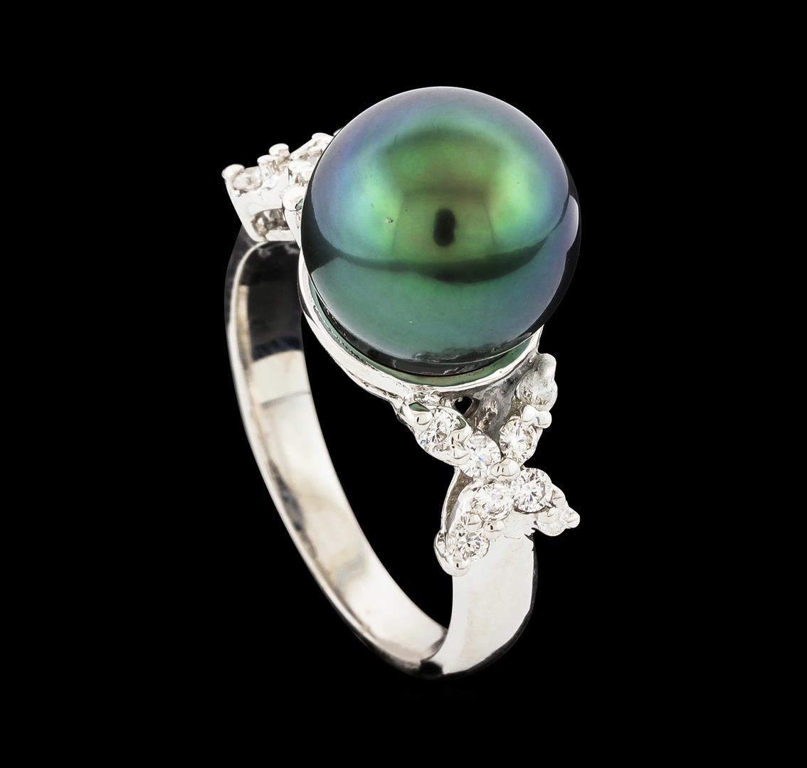 One ring : 14KT white gold weighing 3.84gm containing one pearl with side diamonds weighing 0.27ctw.