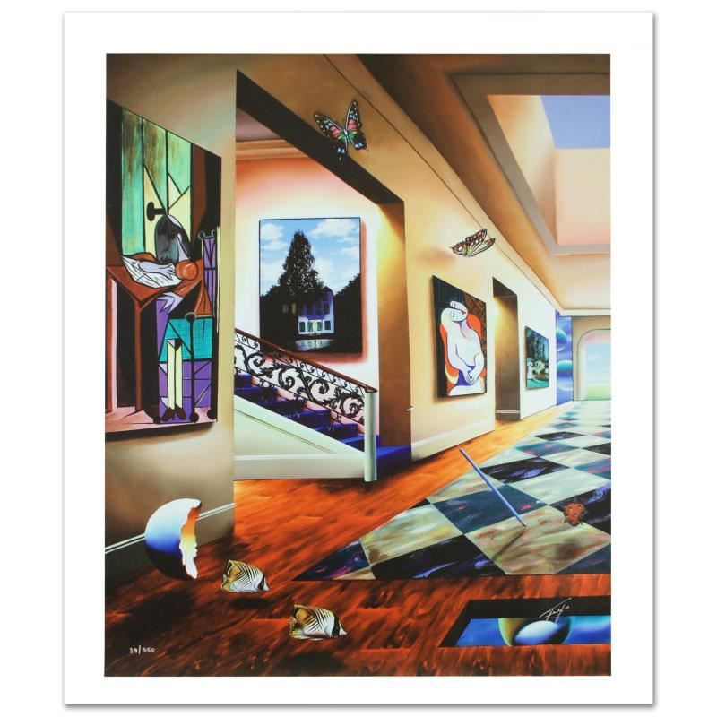 "Perfect Afternoon" is a limited edition giclee diptych on canvas, numbered and hand signed by Ferjo. This piece comes in two adjoining canvases, both have matching edition numbers; it is intended to be displayed as a diptych. Includes Certificate of Authenticity! Measures approx. 24" x 30" (each image)