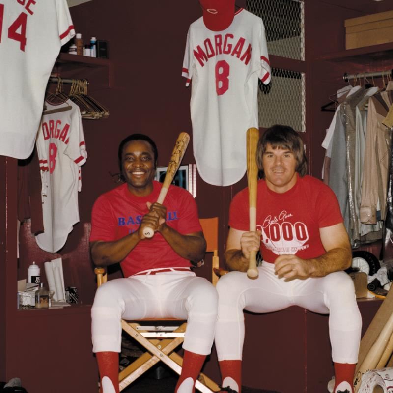 "Pete Rose & Morgan in Clubhouse" is an archival photograph that is autographed by Pete Rose and Joe Morgan! This piece comes framed. Includes Certificate of Authenticity. Measures approx. 26" x 22" (frame), 20" x 16" (image).