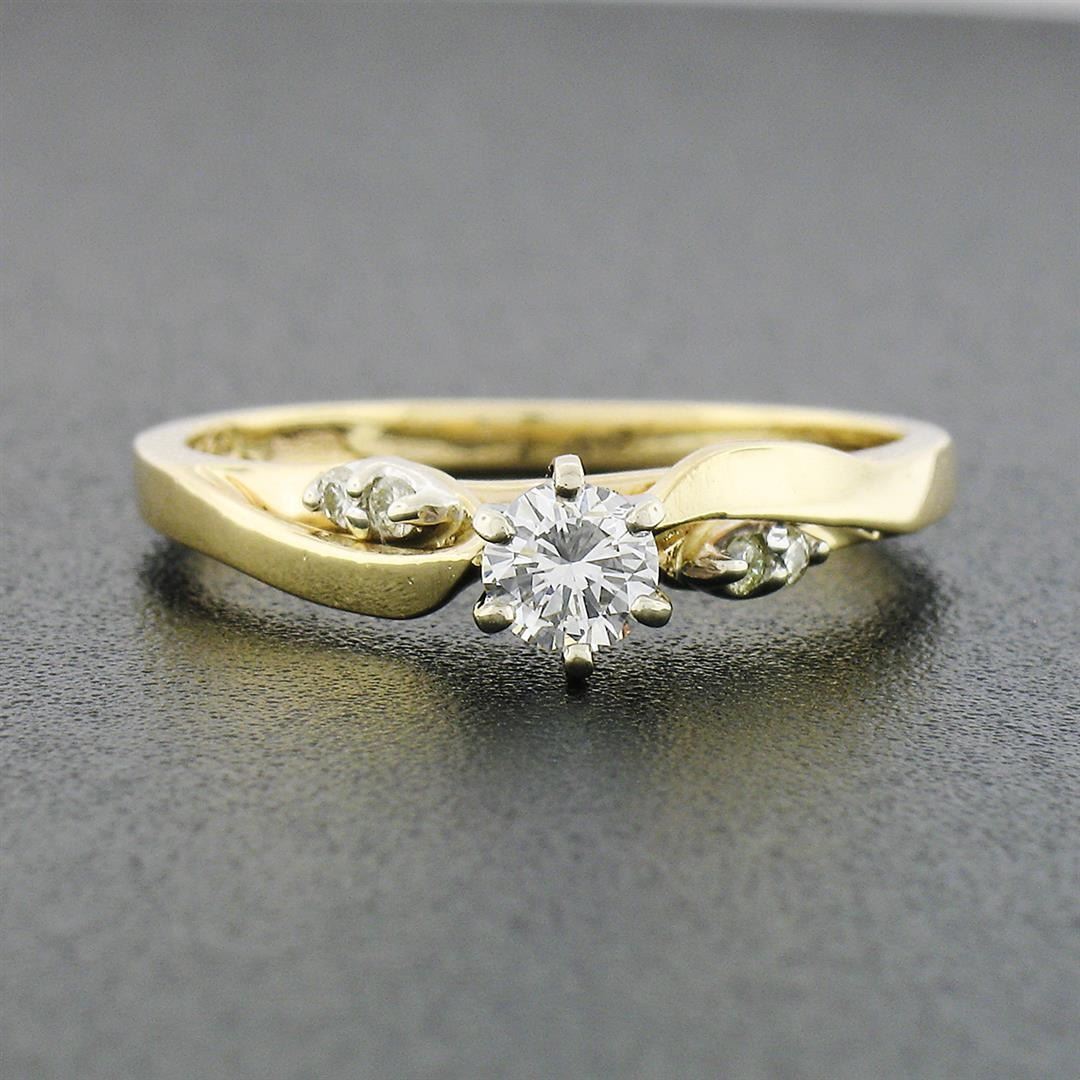 A solid 14k yellow & white gold engagement ring, with 5 round brilliant cut natural diamonds (G/H - VS1-SI1 ; 0.30ctw ). The ring is size 6.0, weighs a total of 2.56 grams, and measures 5.1mm wide.