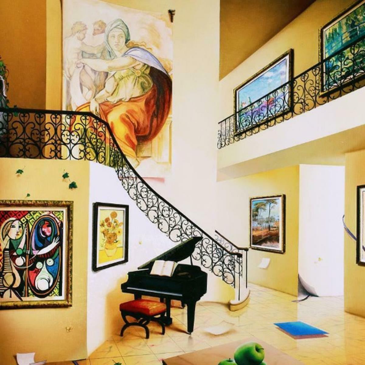 "Piano's Corner" is a limited edition giclee on canvas by Orlando Quevedo. The piece comes numbered and hand signed and includes a certificate of authenticity. Measures approximately 24" x 24".