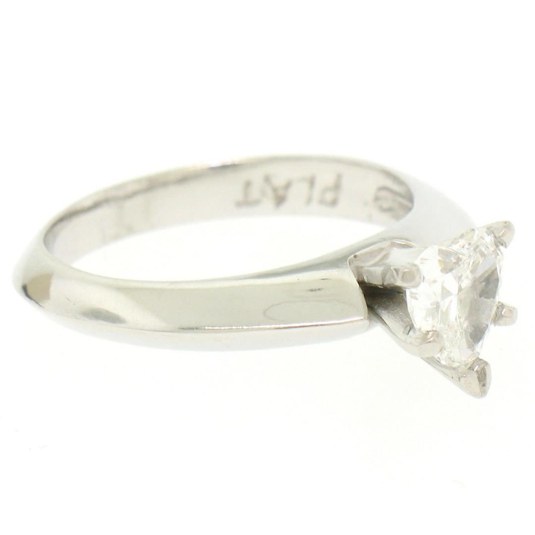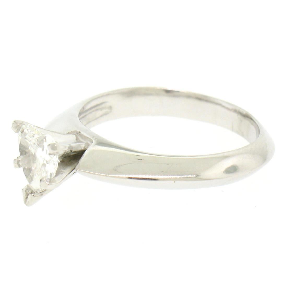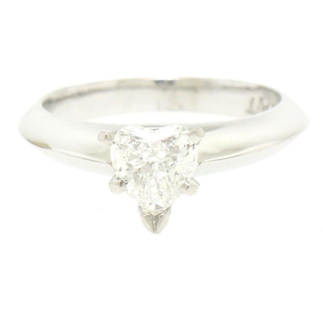 One Platinum 0.66ct GIA Prong Set Heart Brilliant Diamond Solitaire Engagement Ring. Item Details: Material: Solid .900 Platinum, Weight: 6.8 Grams, Stone(s): (1) Natural Genuine Diamond - *See Certification Details Below*, Ring Size: 6.25 (We can custom size this ring.), Ring Width: 7.30mm, Ring Height: 7.50mm rise off the finger, Condition:Like NEW! GIA certified stone w/ certification. Certification Details Laboratory: GIA Report Number: 2155820954 Stone Type: Diamond Stone Shape: Heart Brilliant Carat Weight: 0.66 Dimensions: 6.27x5.87x2.75mm Color: F Clarity: VS1 Polish: Good Symmetry: Good Fluorescence: None