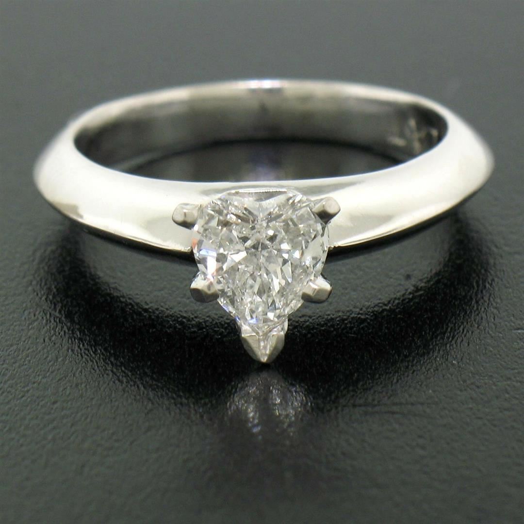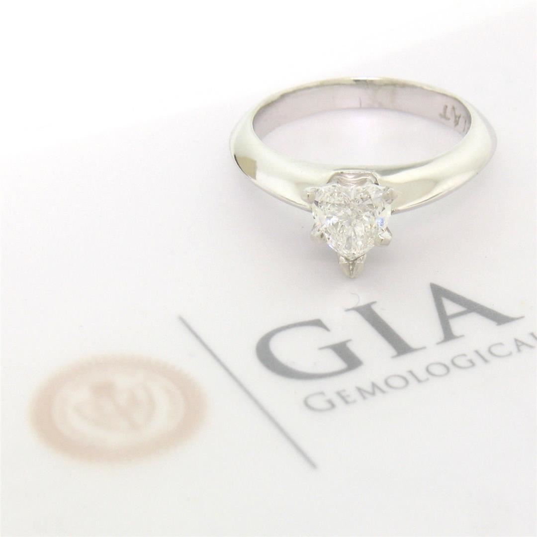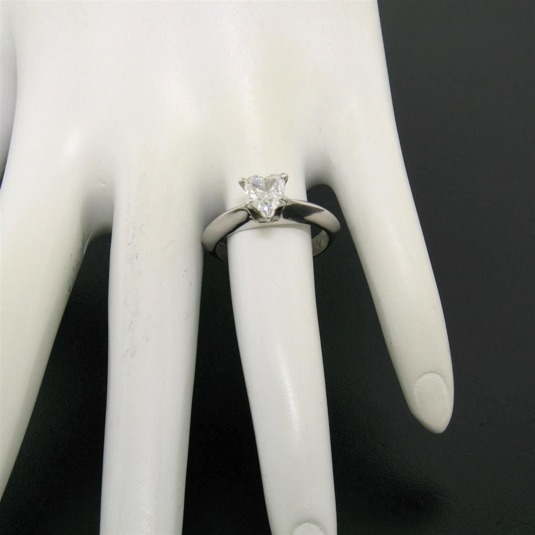 One Platinum 0.66ct GIA Prong Set Heart Brilliant Diamond Solitaire Engagement Ring. Item Details: Material: Solid .900 Platinum, Weight: 6.8 Grams, Stone(s): (1) Natural Genuine Diamond - *See Certification Details Below*, Ring Size: 6.25 (We can custom size this ring.), Ring Width: 7.30mm, Ring Height: 7.50mm rise off the finger, Condition:Like NEW! GIA certified stone w/ certification. Certification Details Laboratory: GIA Report Number: 2155820954 Stone Type: Diamond Stone Shape: Heart Brilliant Carat Weight: 0.66 Dimensions: 6.27x5.87x2.75mm Color: F Clarity: VS1 Polish: Good Symmetry: Good Fluorescence: None