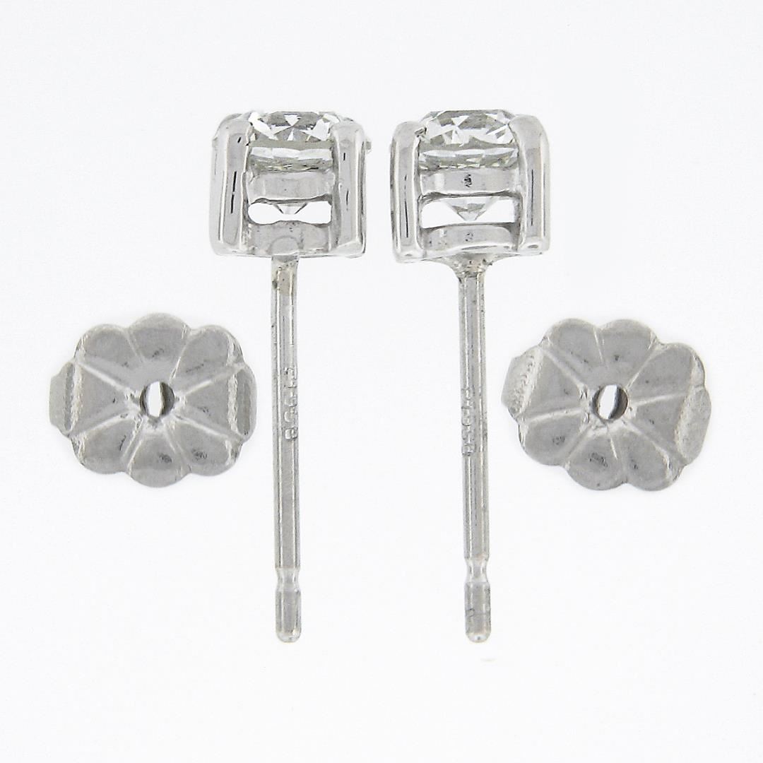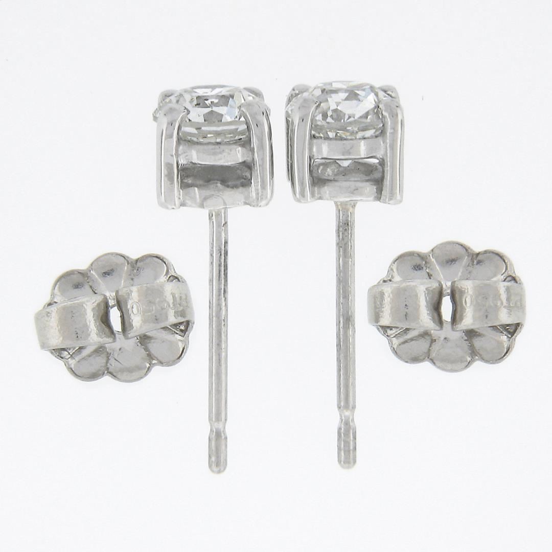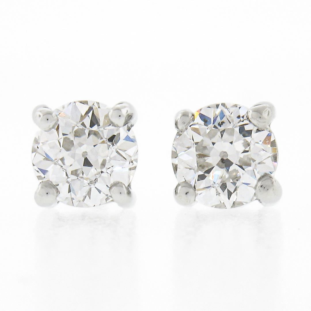 a solid platinum stud earrings, with 2 old European cut natural diamonds (G/H - VS2/SI1 ; 0.91ctw). The earrings measure approximately 6mm in diameter and weigh a total of 1.83 grams.