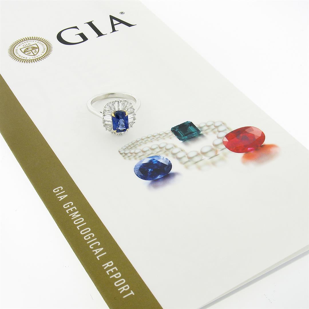 Platinum & 18k Gold GIA Burma NO HEAT Sapphire Baguette Diamond Ballerina Ring