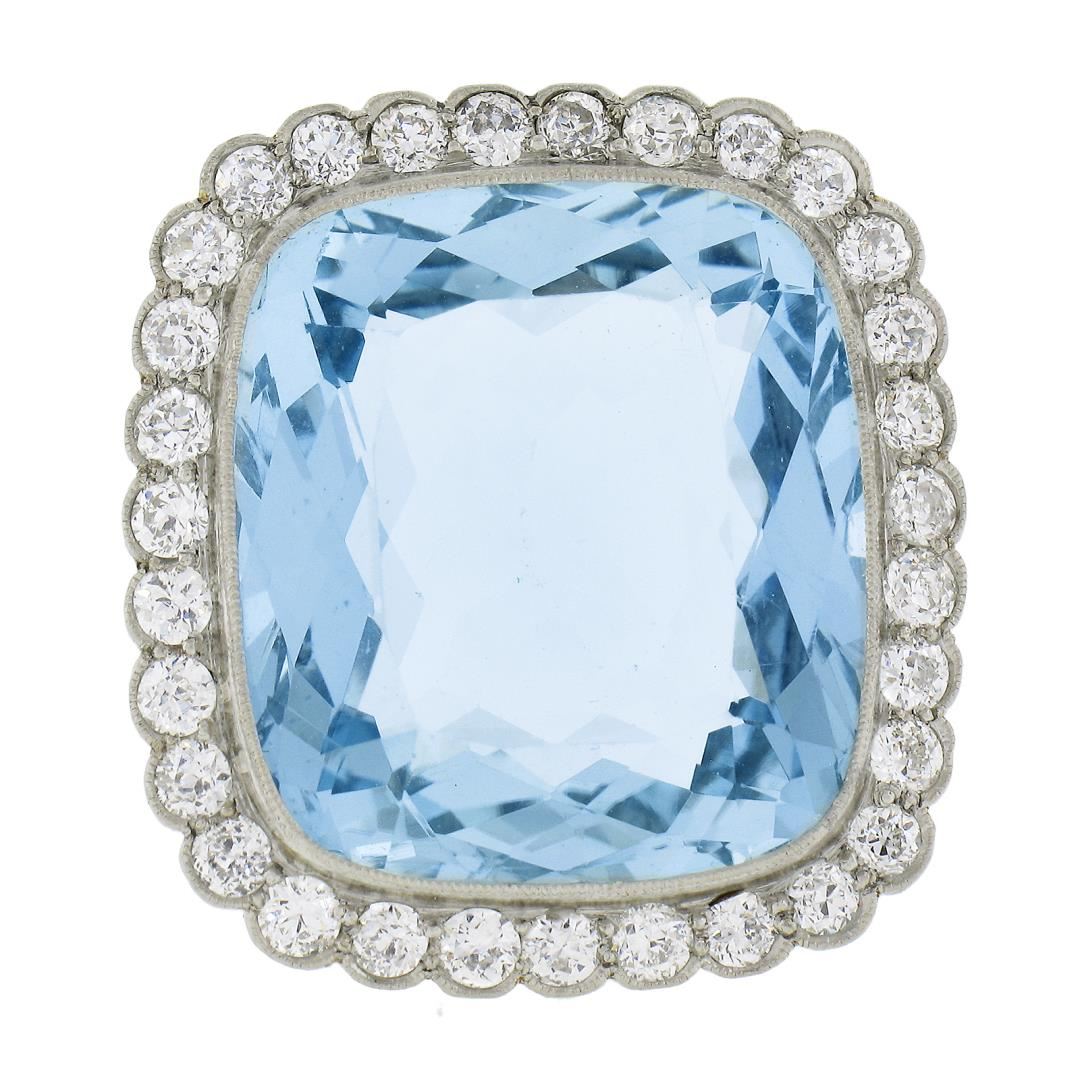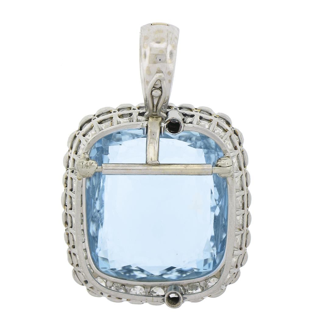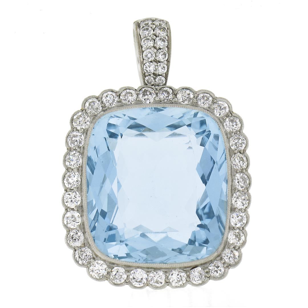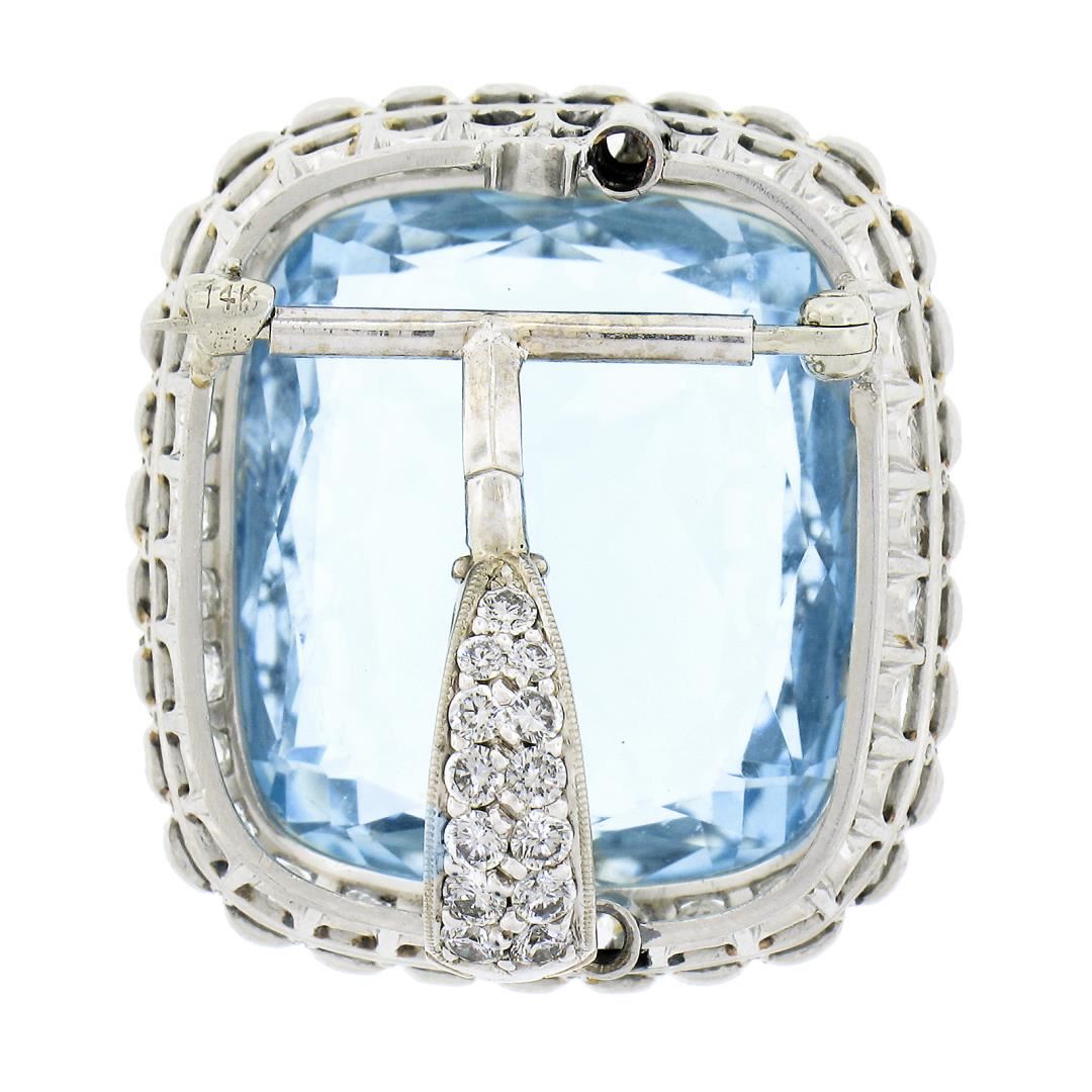 Platinum 38.9ctw GIA Cushion Cut Aquamarine Diamond Pin Brooch Enhancer Pendant