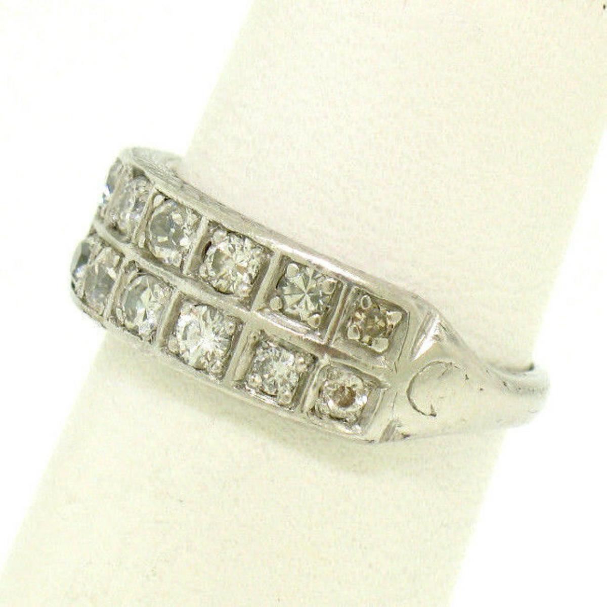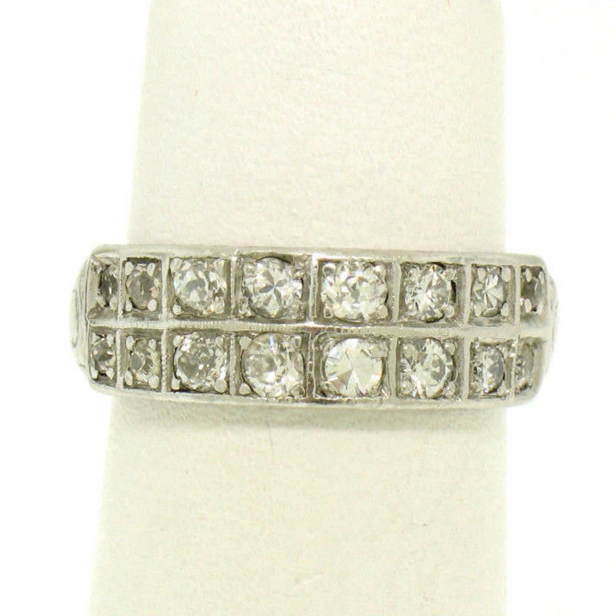 One Antique Art Deco Platinum .65ctw European & Single Cut Diamond Etched Band Ring. Item Details: Material: Solid .900 Platinum, Weight: 3.10 Grams, Stone(s): (16) Natural Genuine Diamonds - Round Single and European Cut - Prong Set - F/G Color - VS2/SI1 Clarity, Total Carat Weight: 0.65 (approx.), Ring Size: 5.0 (We can custom size this ring.), Ring Width: 6.25mm, Ring Height: 2.44mm rise off the finger, Condition: Antique, art deco period piece - Great condition - Ready to Wear.