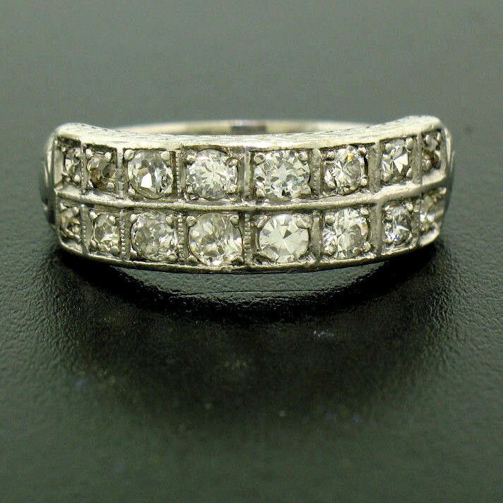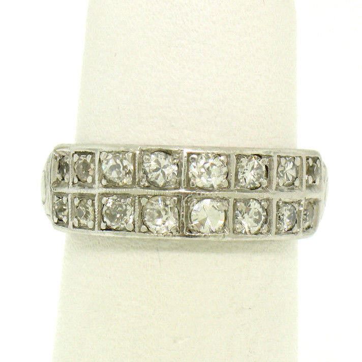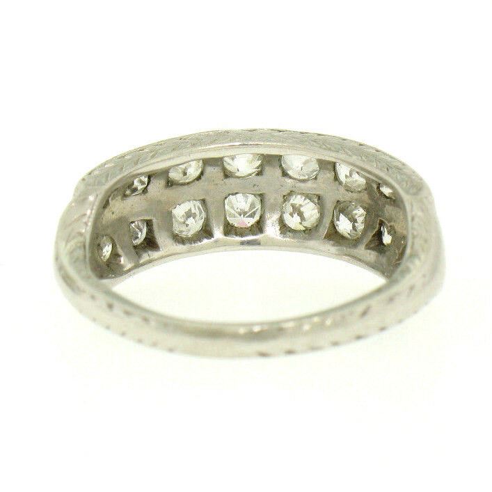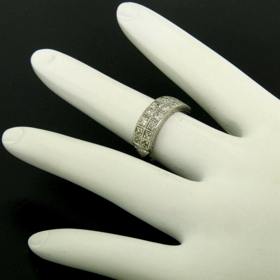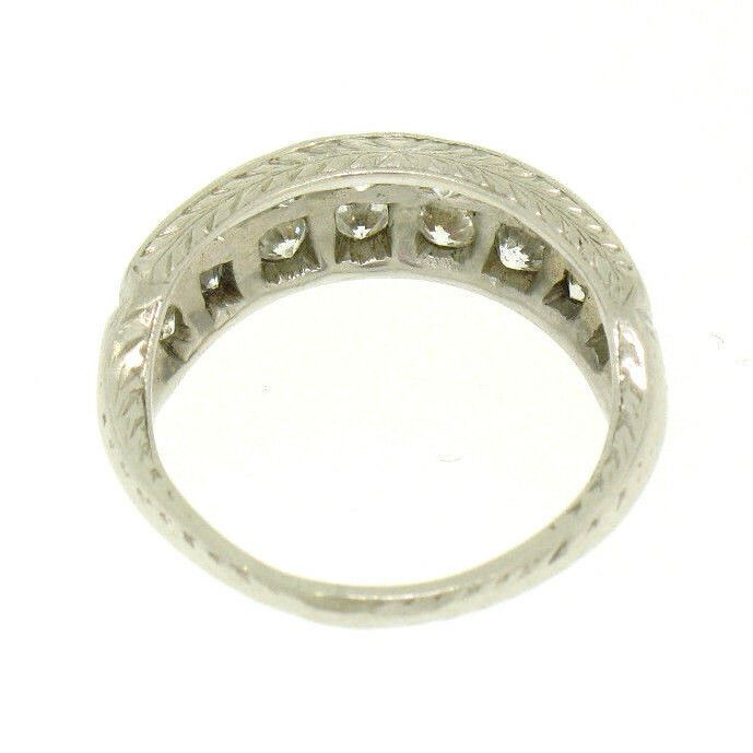 One Antique Art Deco Platinum .65ctw European & Single Cut Diamond Etched Band Ring. Item Details: Material: Solid .900 Platinum, Weight: 3.10 Grams, Stone(s): (16) Natural Genuine Diamonds - Round Single and European Cut - Prong Set - F/G Color - VS2/SI1 Clarity, Total Carat Weight: 0.65 (approx.), Ring Size: 5.0 (We can custom size this ring.), Ring Width: 6.25mm, Ring Height: 2.44mm rise off the finger, Condition: Antique, art deco period piece - Great condition - Ready to Wear.