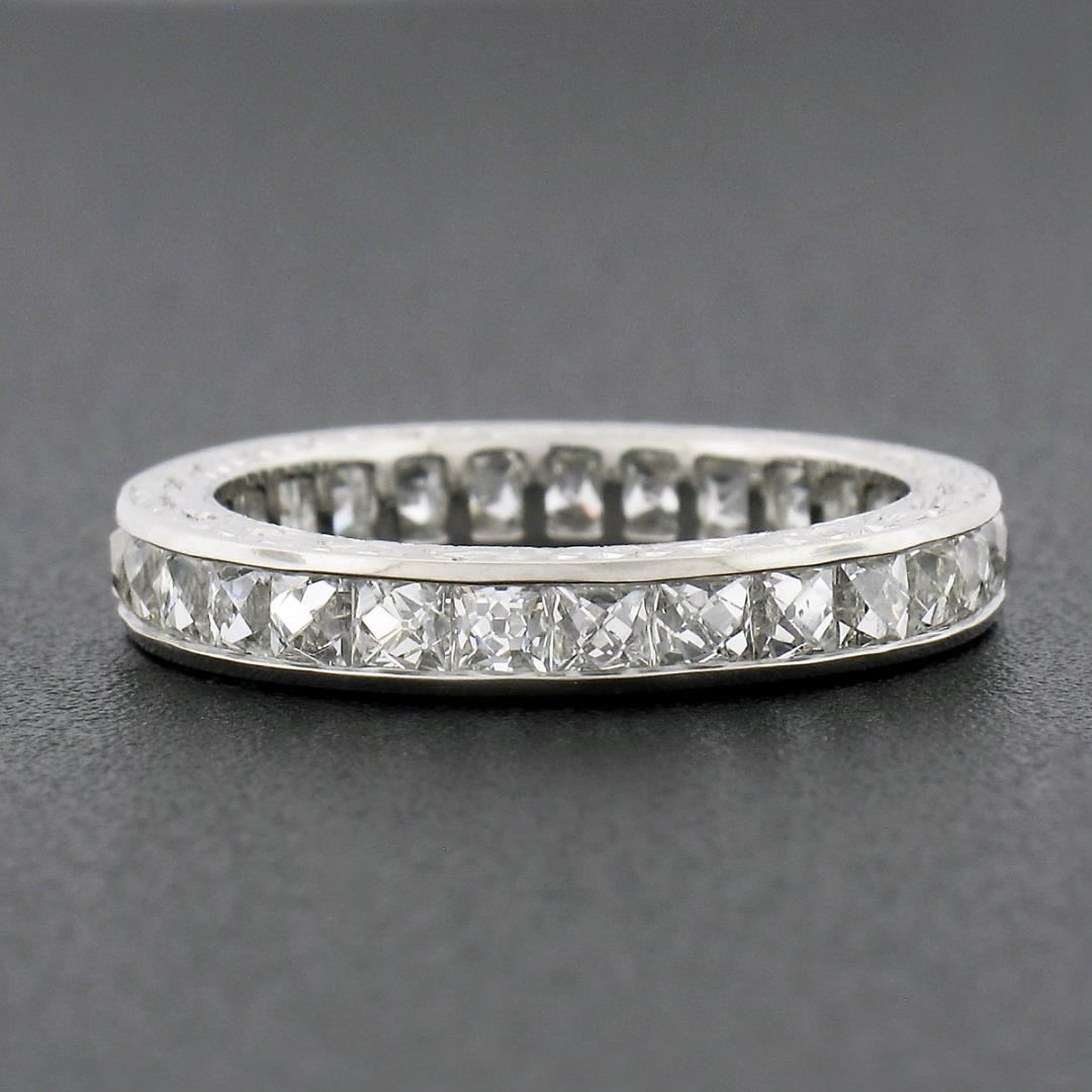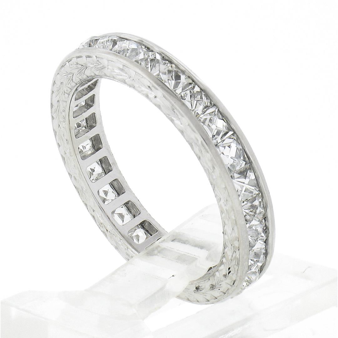 Platinum French Cut Channel 3.0 ctw Diamond Hand Engraved Eternity Band Ring