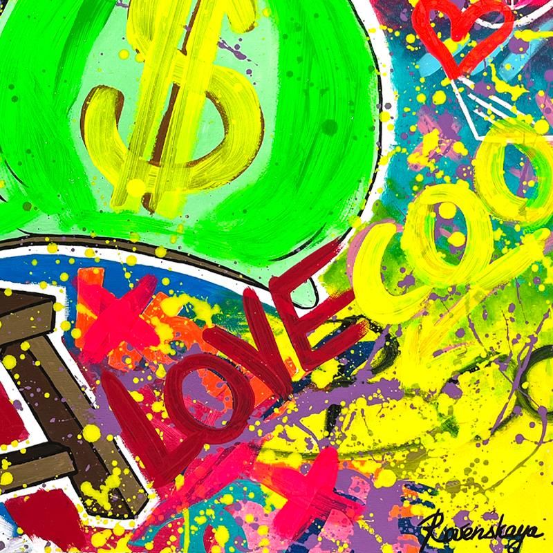 "Playing with Money" is a one-of-a-kind mixed media on deckle edge paper by Nastya Rovenskaya; hand signed by the artist. This piece comes custom framed and includes letter of authenticity. Measures approximately 36" x 46" (framed), 30" x 40" (image). This item requires special handling and may have a longer than usual turnaround.