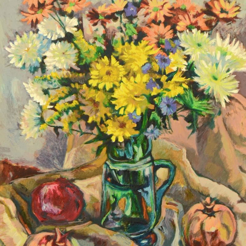 "Pomegranates" is a limited edition serigraph on paper by Robert Rosenberg, numbered and hand signed by the artist. Includes Letter of Authenticity. Measures approx. 19" x 14" (image).
