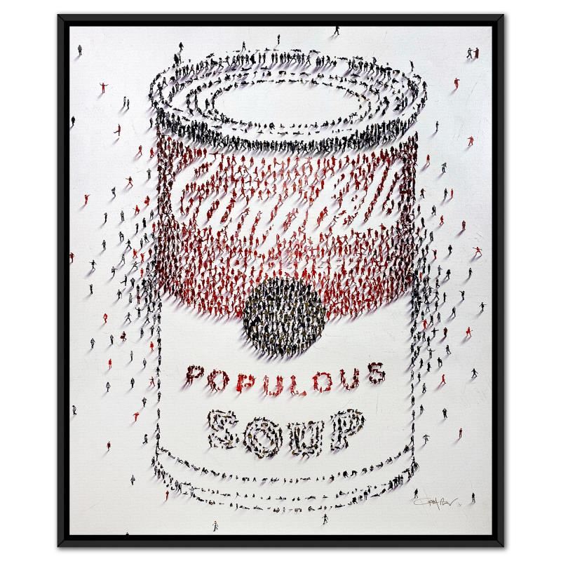 "Populous Soup II" is a limited edition giclee on canvas by Craig Alan. This piece comes from the Alan's "Populus" series and is numbered and hand signed by the artist. This piece comes custom framed. Includes Letter of Authenticity. Measures approx. 51.5" x 41.5" (frame), 50" x 40" (image).