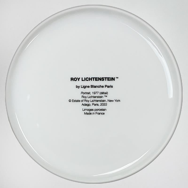 "Portrait" is a Limoges porcelain plate featuring art by Roy Lichtenstein (1923-1997). This plate is custom framed and floated on linen. Measures approx. 16" x 16" (frame), 11" (plate diameter).