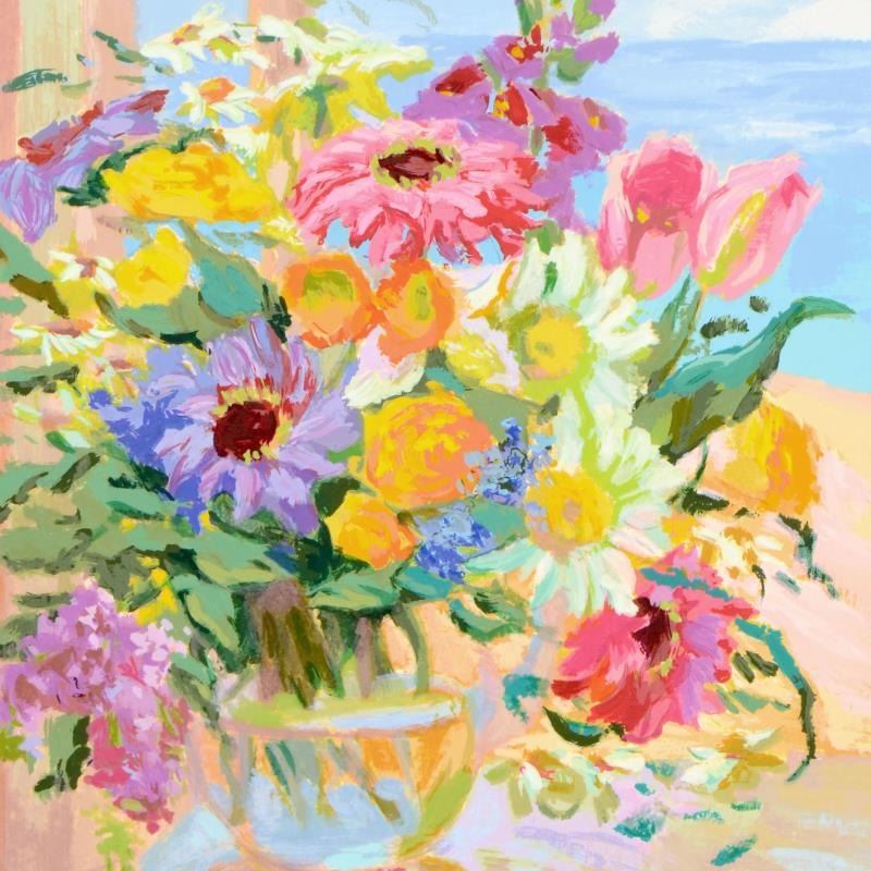 "Potpourri" is a limited edition giclee on paper by S. Burkett Kaiser, numbered and hand signed by the artist. Includes Letter of Authenticity. Measures approx. 15" x 15" (border), 12" x 12" (image).