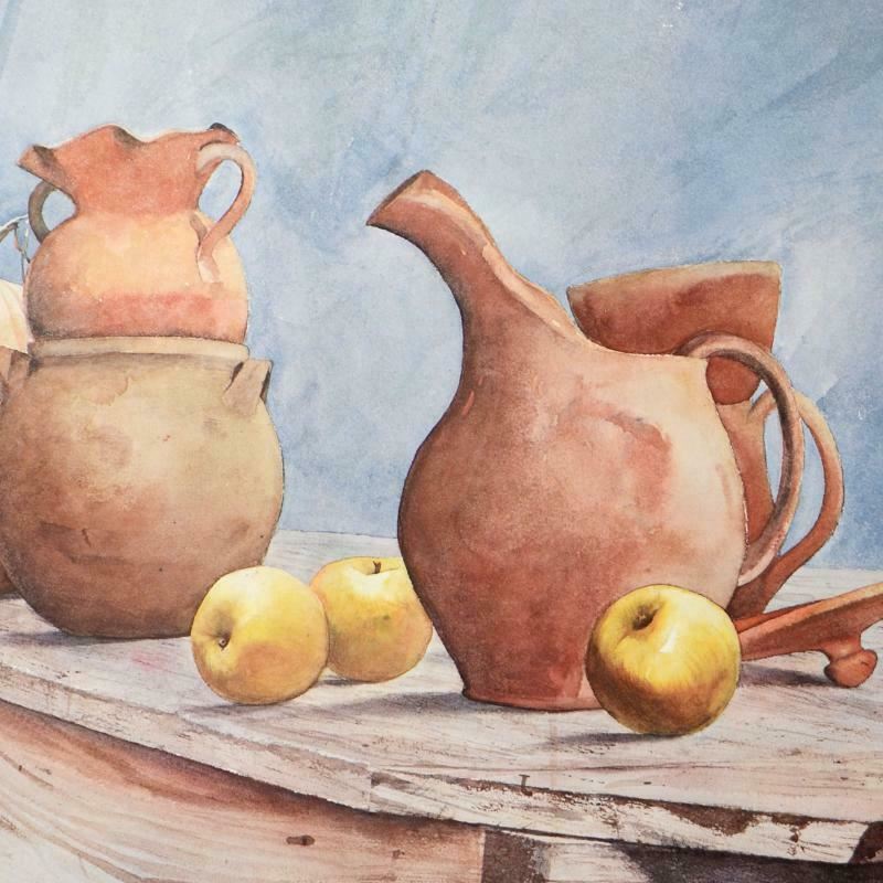 "Pottery Still Life" is a limited edition lithograph on paper by William Nelson, numbered and hand signed by the artist! Measures approx. 28.5" x 22.5" (with border); 25" x 19" (image).
