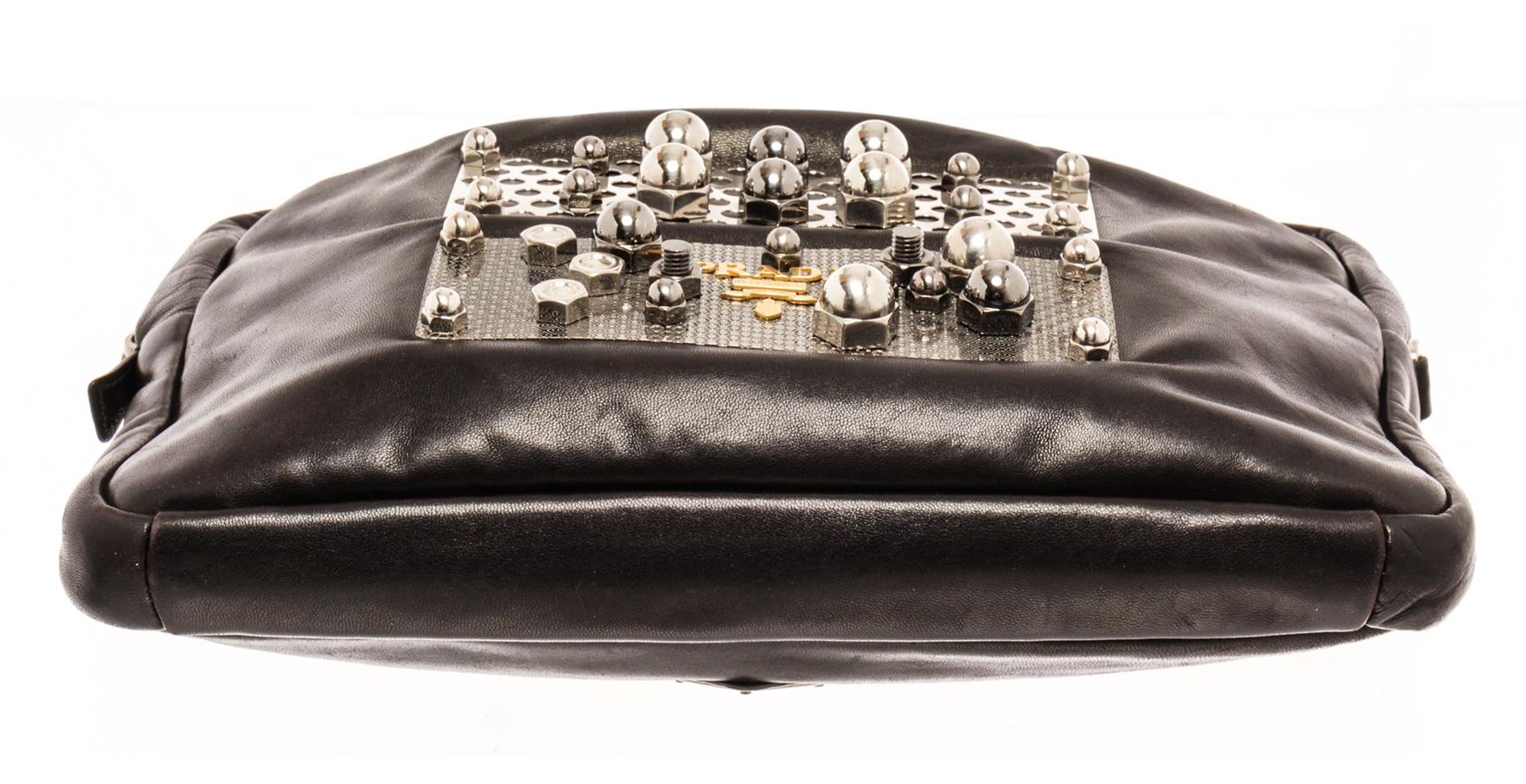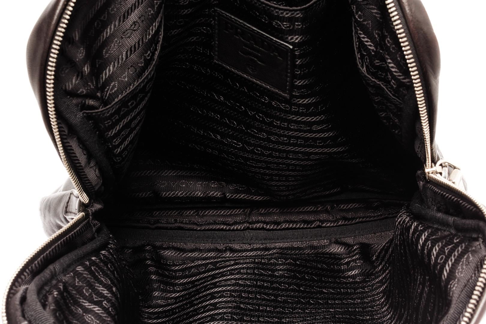 Prada Black Leather Clutch Bag. All available information is listed in the description and shown in the photos. Prada Black Leather Clutch Bag with hardly used and in top condition prada black handheld stylish bag. can fit a small laptop or ipad and can be used as a large clutch or computer/work bag. it has no straps.