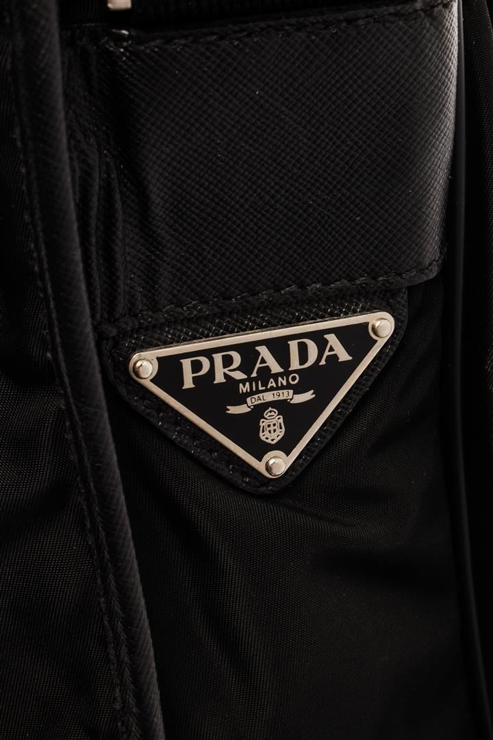 Prada Black Nylon Saffiano Trimmed Tessuto Messenger Bag. All available information is listed in the description and shown in the photos. Prada Black Nylon Saffiano Trimmed Tessuto Messenger Bag with Black Nylon, Silver-Tone Hardware, Single Adjustable Shoulder Strap, Grosgrain Trim & Single Exterior Pocket, Logo Jacquard Lining, Three Interior Pockets, Buckle Closure at Front. Height: 10.25", Width: 12.25", Depth: 2.75" / 26.03 x 31.11 x 6.98 CM