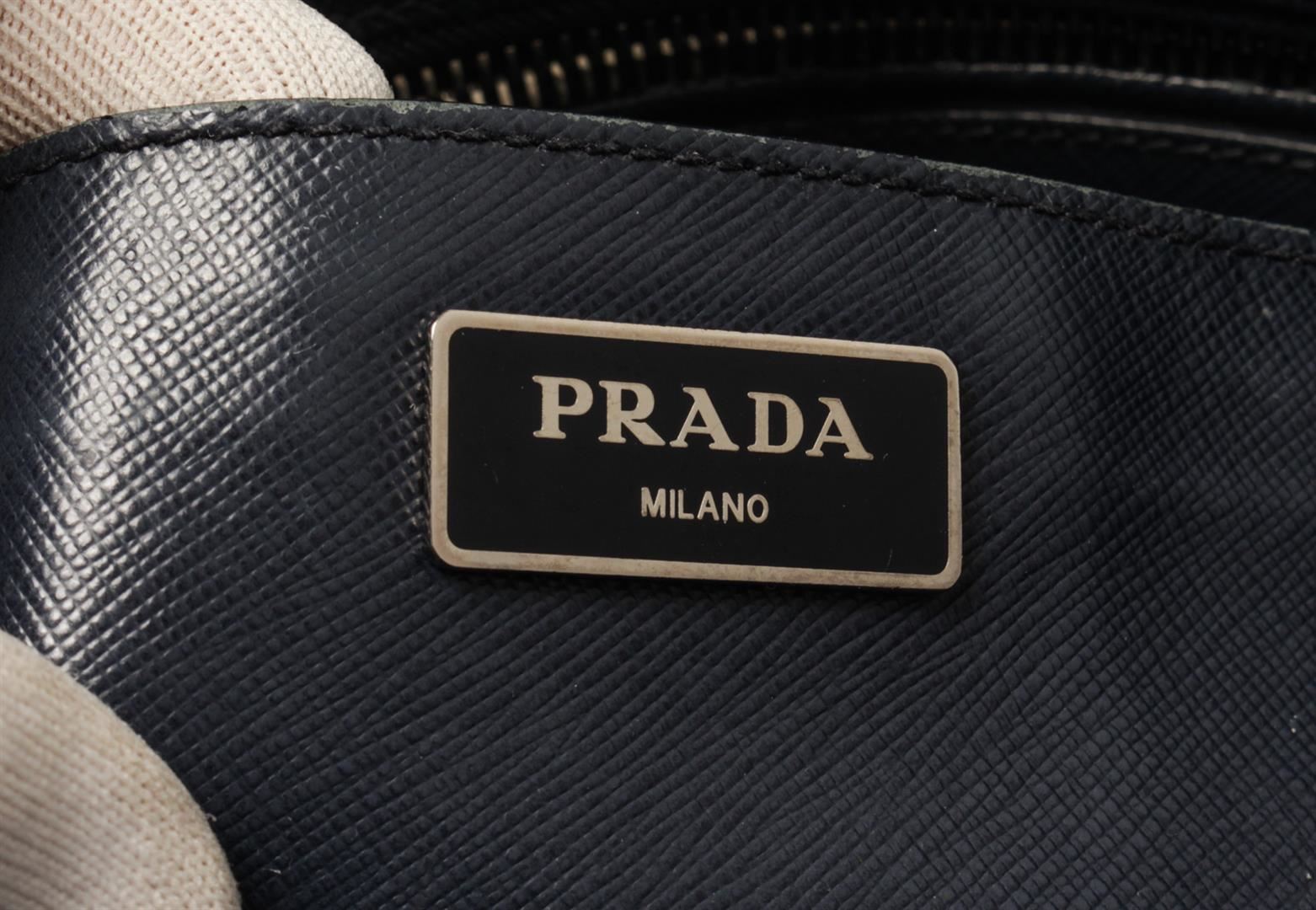 One Prada Black Saffiano 2 Way Tote Bag. Item is sold AS-IS. All available information is listed in the description and shown in the photo. Prada Black Saffiano 2 Way Tote Bag with top handle bag, clochette, fabric lining, interior pockets and silver hardware.