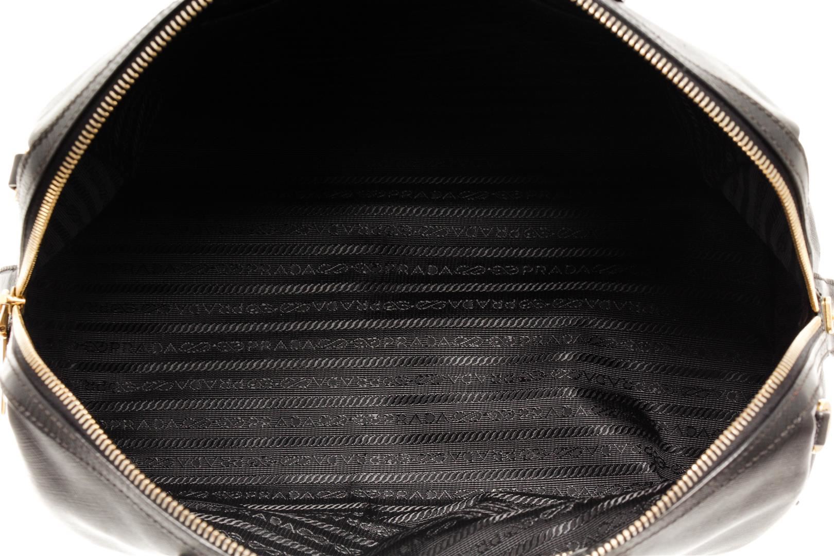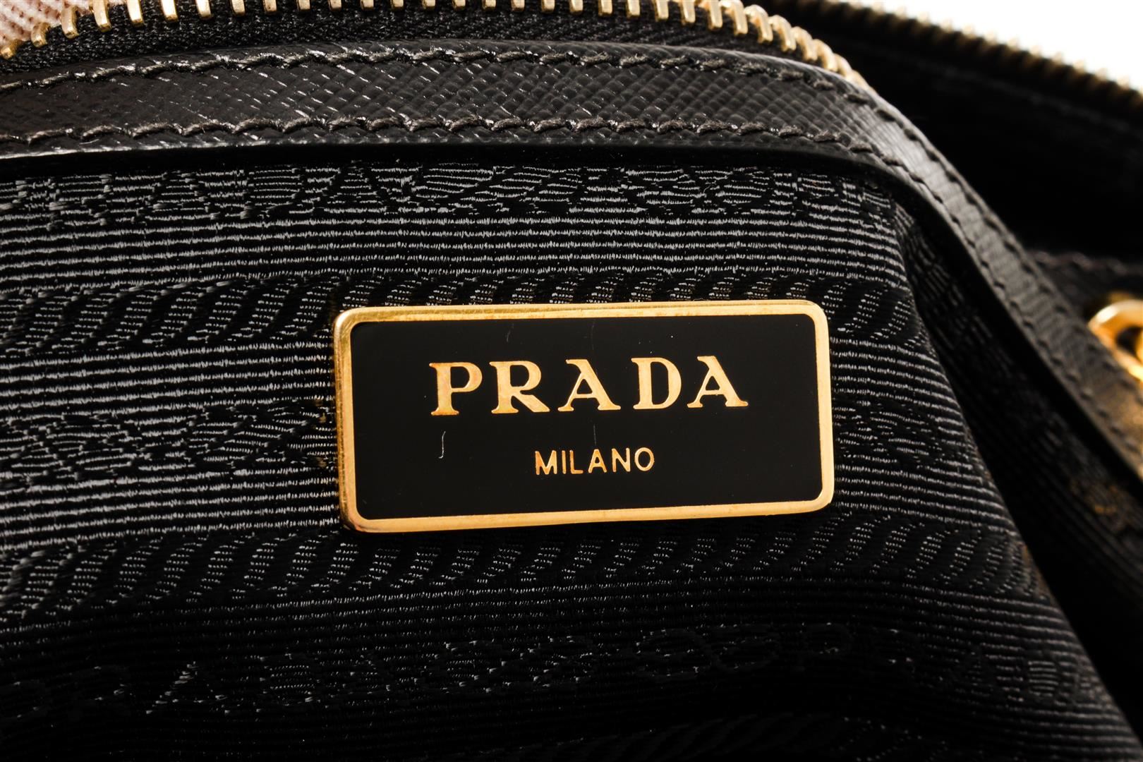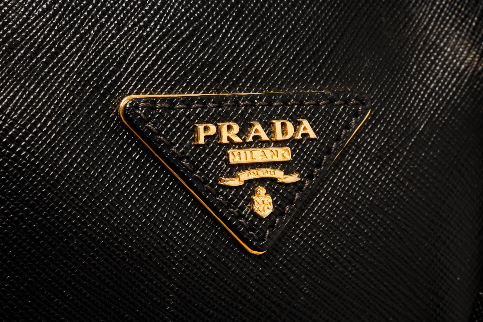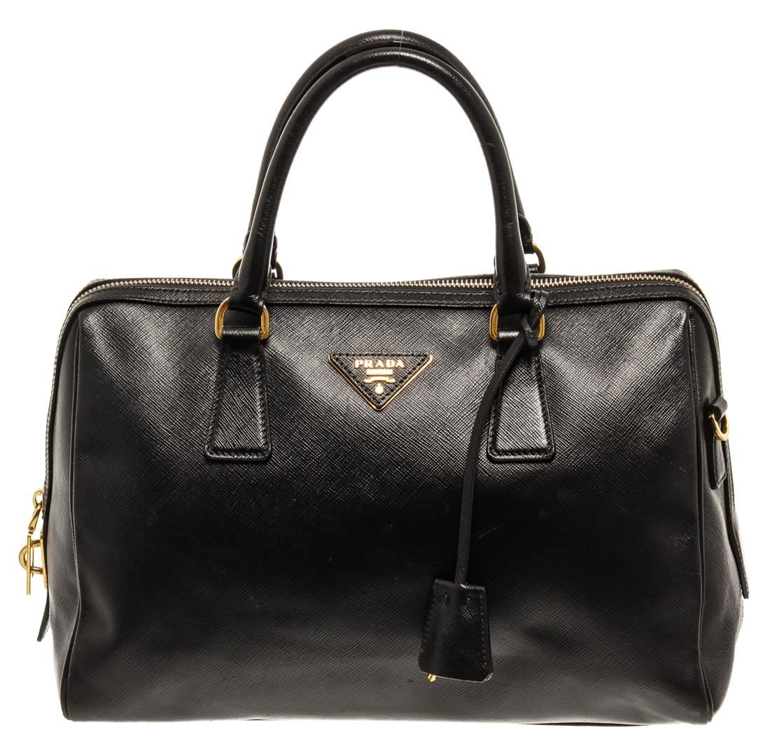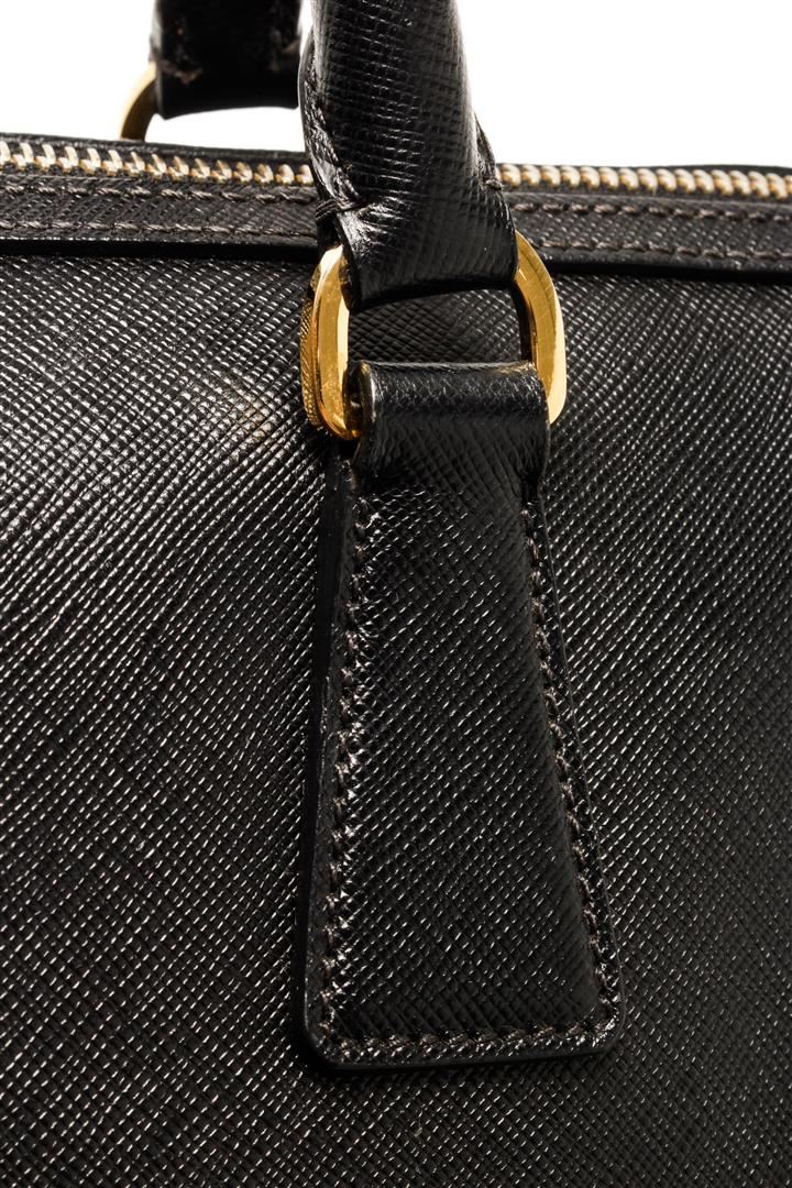 One Prada Black Saffiano Leather Top Handle Bag. Item is sold AS-IS. All available information is listed in the description and shown in the photo. Prada black Saffiano leather top handle bag with gold-tone hardware, zipper closure, and black fabric lining.