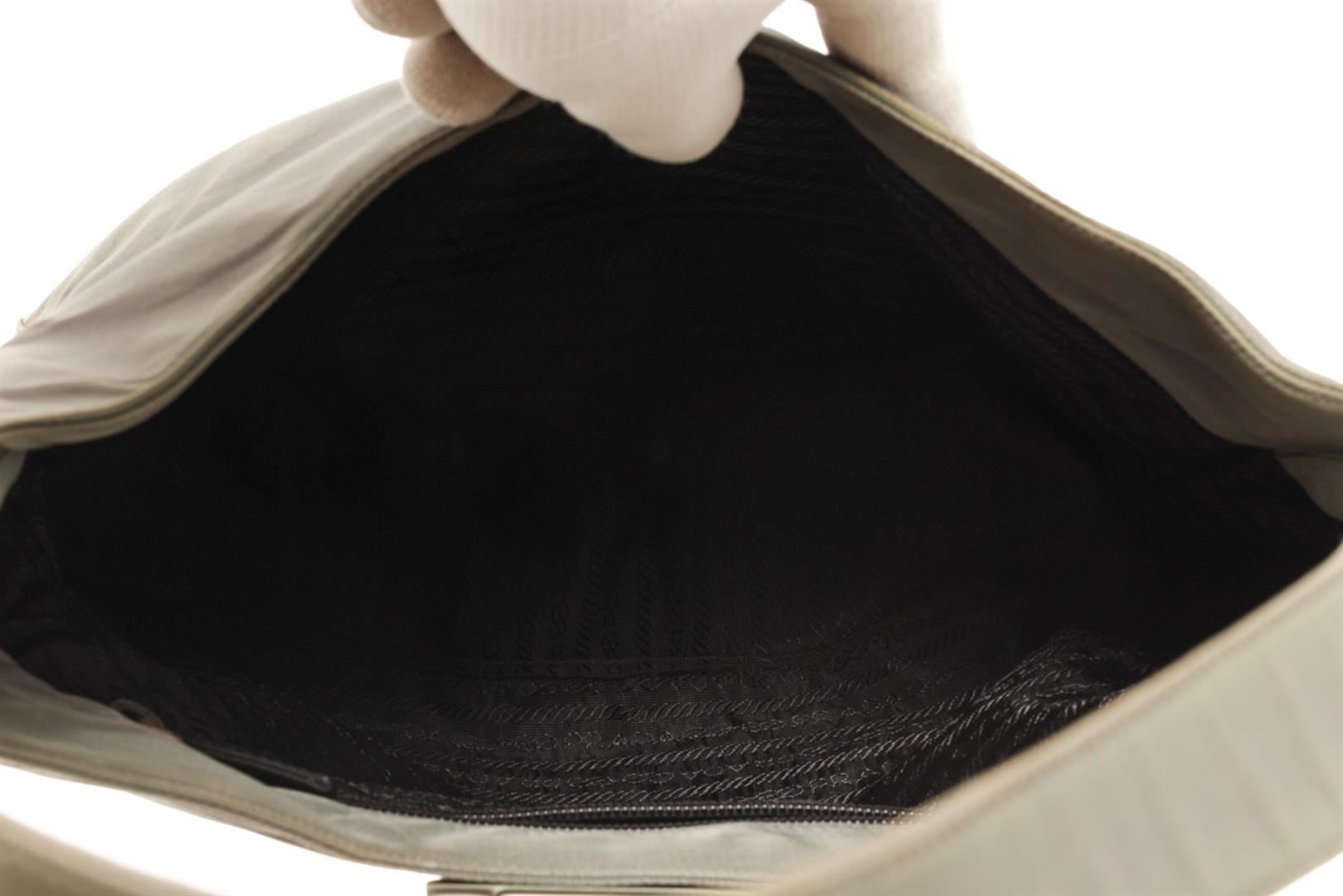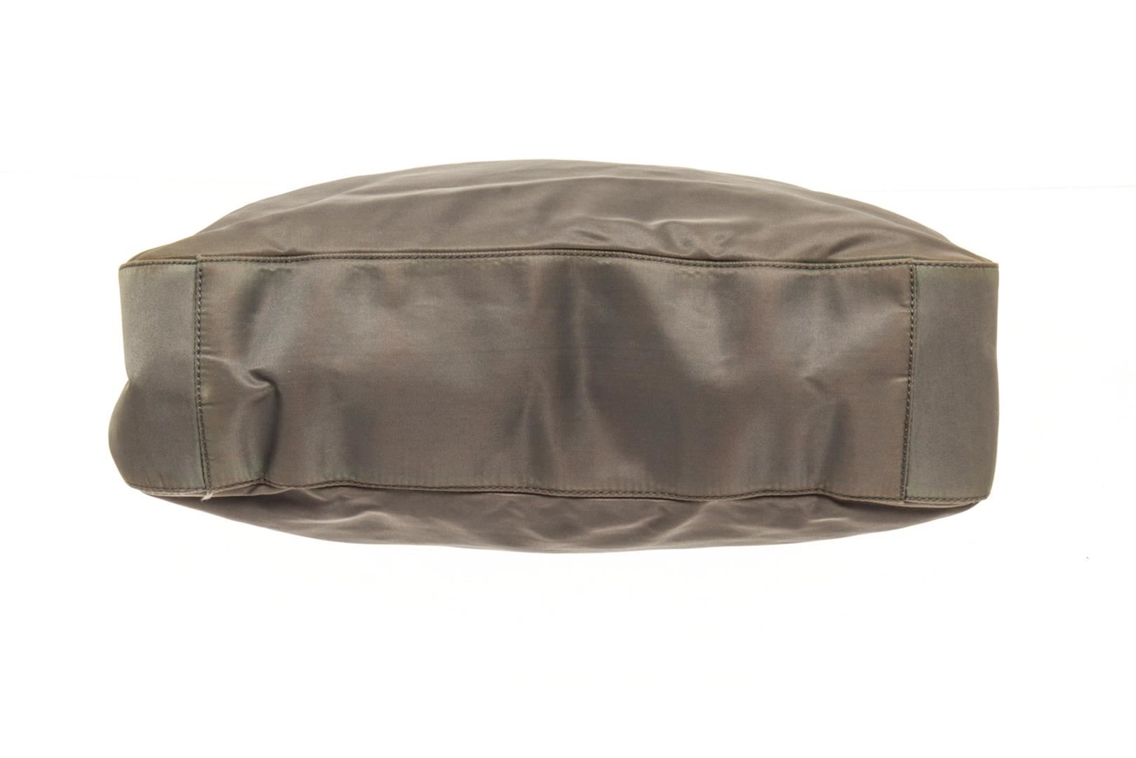 One Prada Brown Nylon One Shoulder Bag. Item is sold AS-IS. All available information is listed in the description and shown in the photo. Prada Brown Nylon One Shoulder Bag with shoulder strap, silver hardware, nylon exterior, fabric lining, interior zipper pockets.