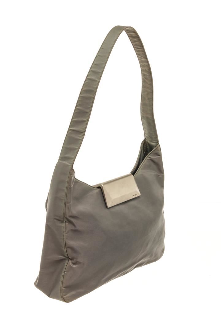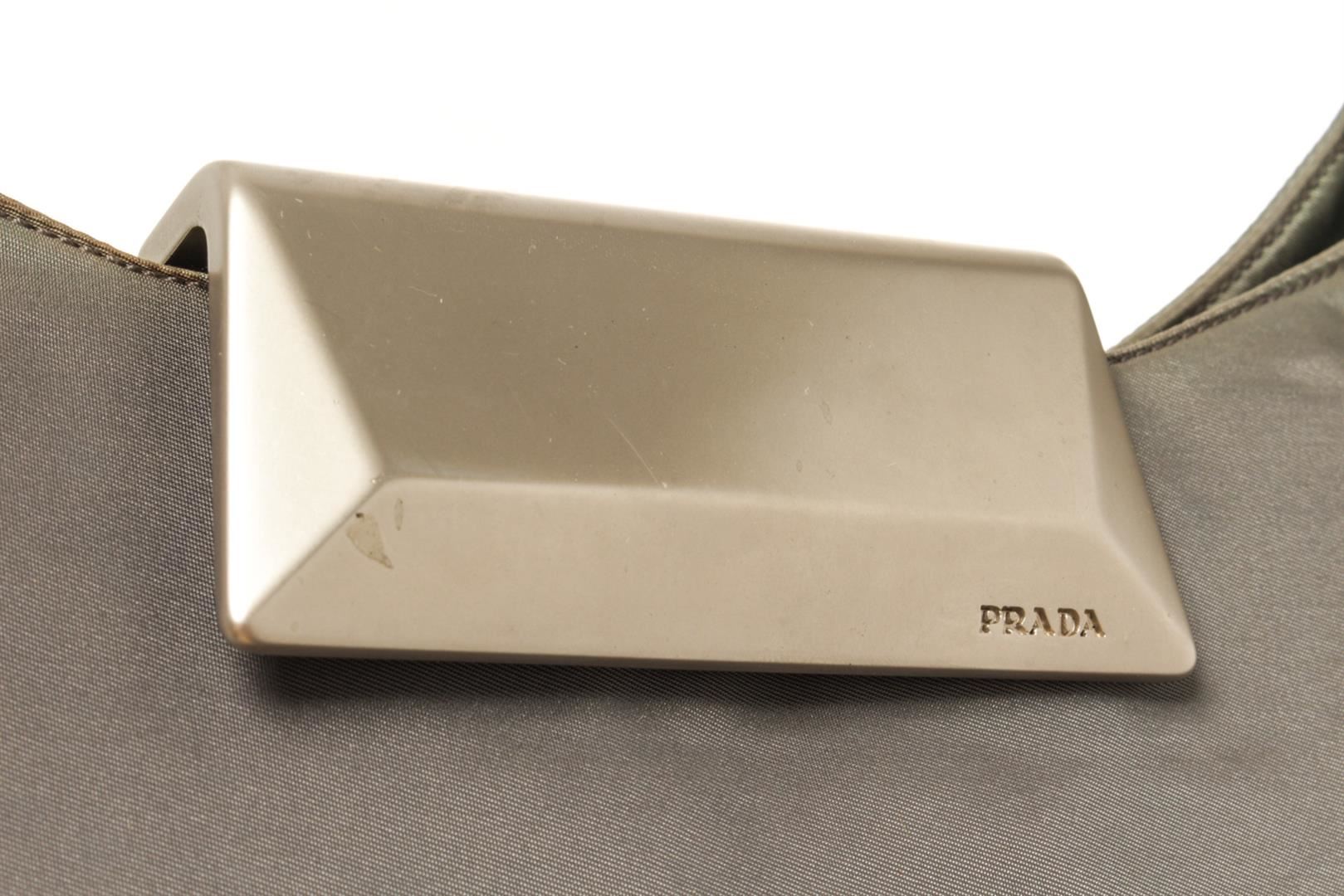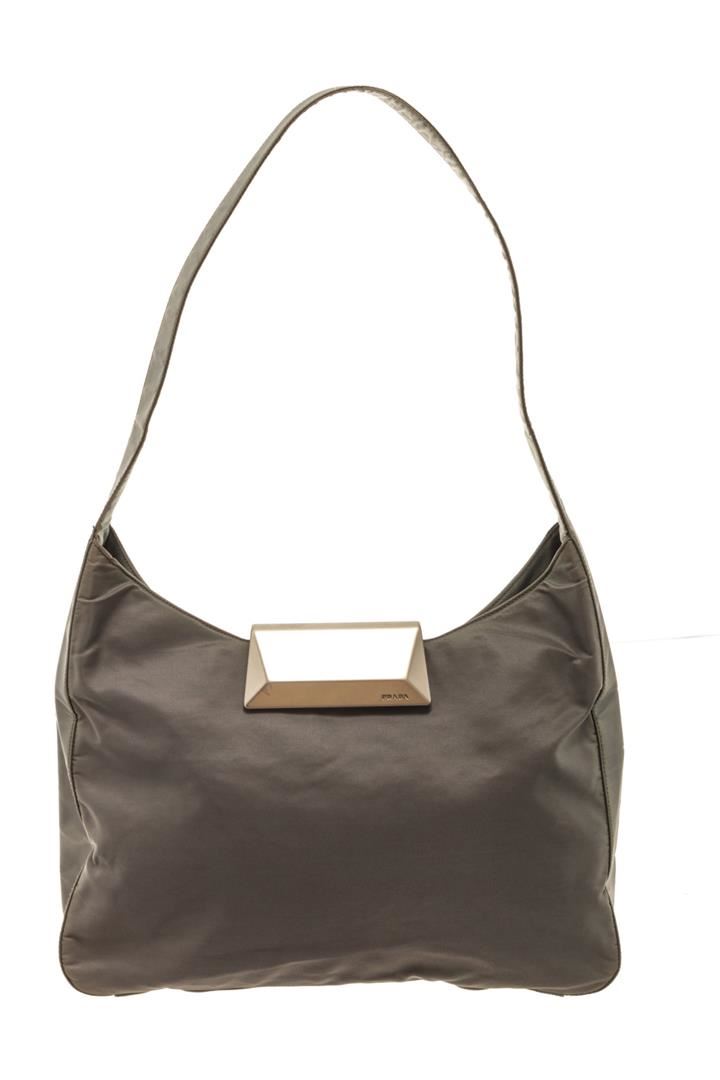 One Prada Brown Nylon One Shoulder Bag. Item is sold AS-IS. All available information is listed in the description and shown in the photo. Prada Brown Nylon One Shoulder Bag with shoulder strap, silver hardware, nylon exterior, fabric lining, interior zipper pockets.