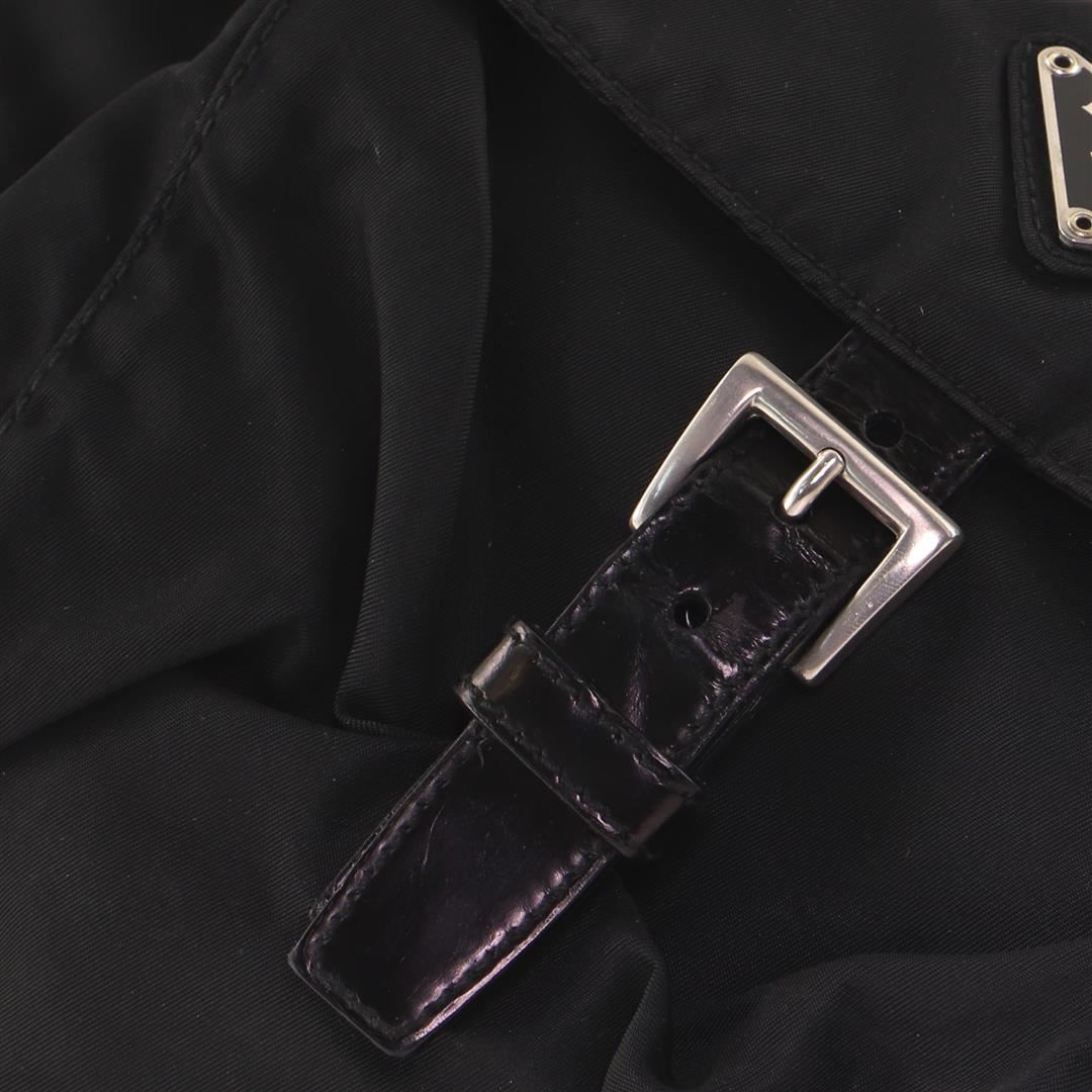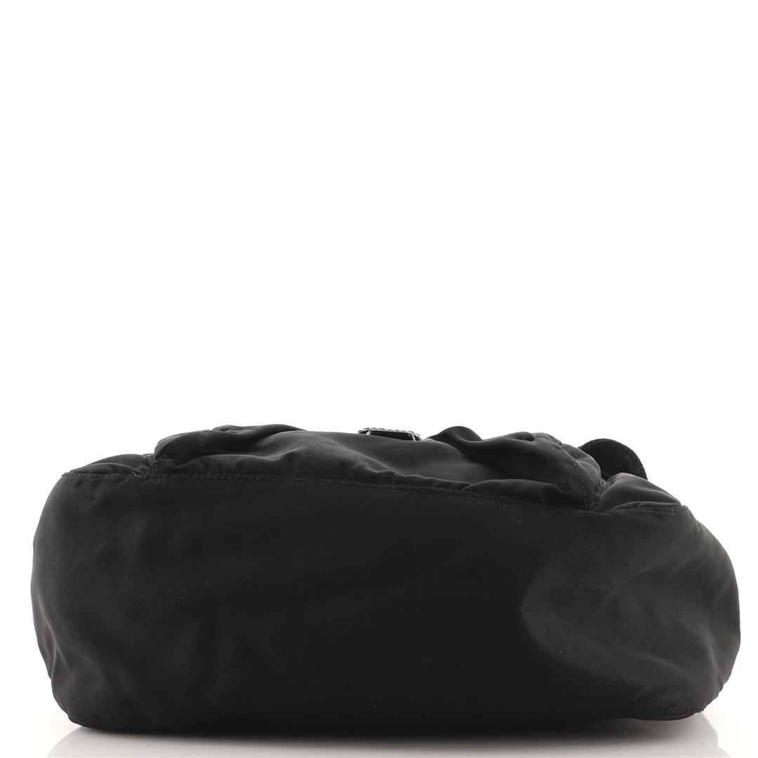 One Prada Buckle Messenger Bag Tessuto Small. Item is sold AS-IS. All available information is listed in the description and shown in the photo. Prada Buckle Messenger Bag Tessuto Small. Odor in interior. Moderate creasing and wear on exterior, scuffs on leather trims, small nicks and pulls on base and rear. Pilling on zipper tape and strap base, cracking on closure wax edges, tarnish and scratches on hardware.