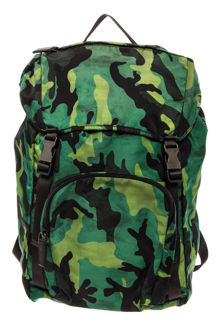 Prada Green Printed Camo Tessuto Large Front Pocket Double Buckle Backpack