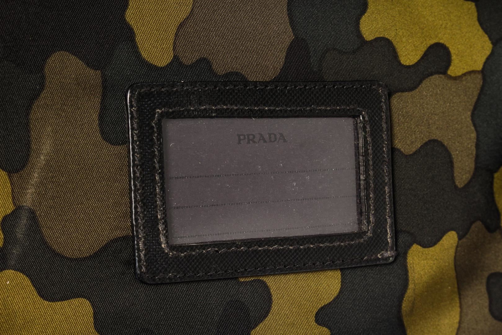 One Prada Green Yellow Multicolor Printed Camo Tessuto Nylon Double Pocket Buckle Large Backpack. Item is sold AS-IS. All available information is listed in the description and shown in the photo. Prada Large Backpack features yellow multicolor camouflage Tessuto nylon with two front zipper pockets with zippers, black nylon top handle, two black padded shoulder strap that can be adjusted, silver-tone hardware, flap over main compartment and black canvas lining. Height 22", Width 13", Depth 6", Strap Drop 8-20"