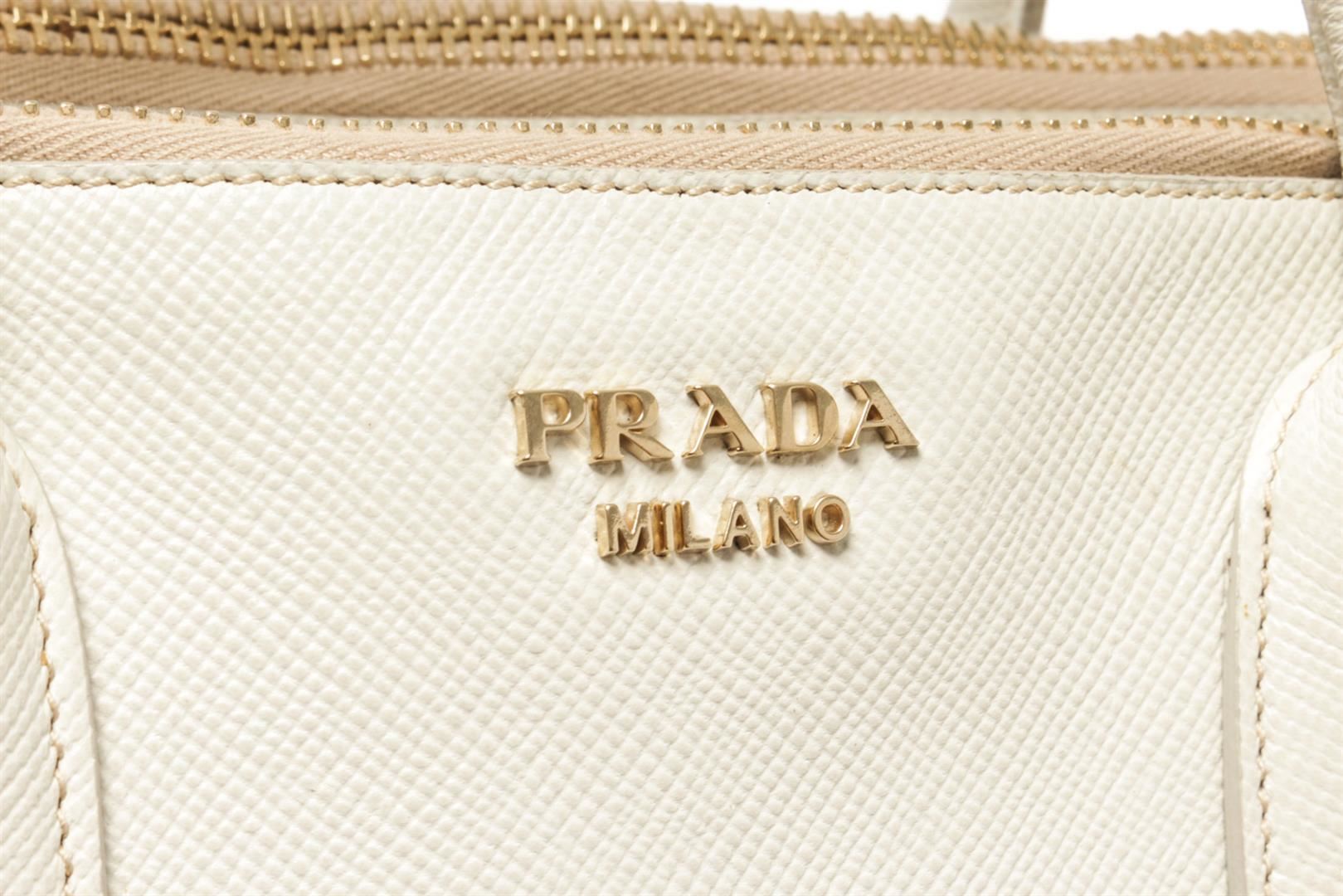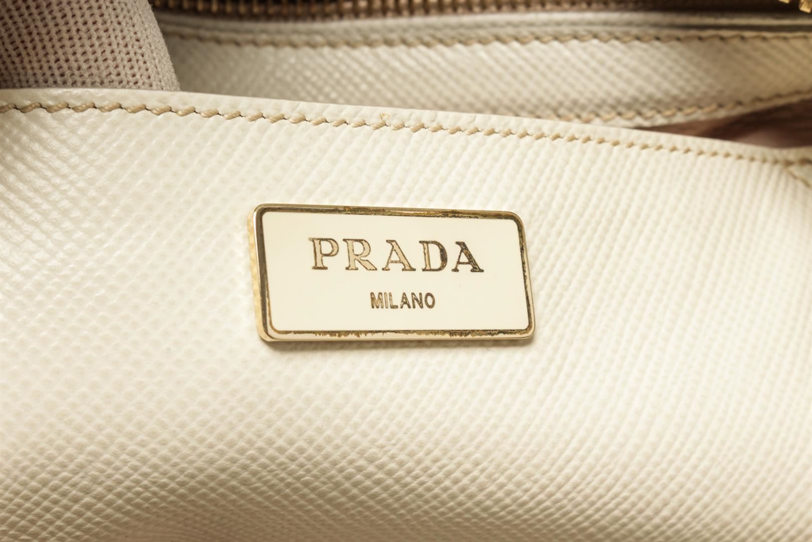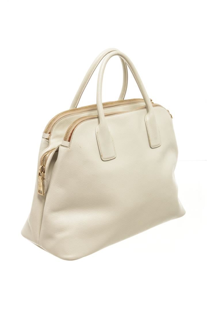 One Prada White Leather Tote Bag. Item is sold AS-IS. All available information is listed in the description and shown in the photo. prada white leather tote bag
