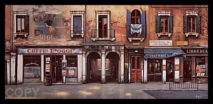 Pradzynski "Caffe Poggi" Hand Signed and Numbered Limited Edition Serigraph on Paper Dimensions: 23.5 x 50.5 Inches (Note: Edition number received may differ from photo)