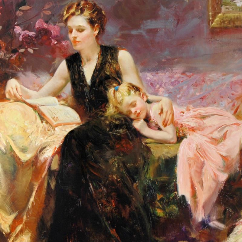"Precious Moments" is a limited edition giclee on canvas by Pino (1931-2010), numbered and hand signed by the artist. Includes Certificate of Authenticity. Measures approx. 16" x 12" (image).