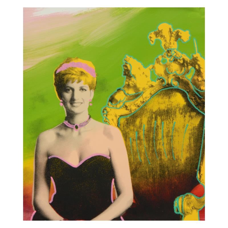"Princess Diana" is a one-of-a-kind hand-painted mixed media on canvas by Ringo (Daniel Funes) - protege of Andy Warhol's apprentice, Steve Kaufman. This piece is hand signed by the artist and Includes Certificate of Authenticity. This piece comes from the Andy Warhol Legacy Series. Measures approx. 16" x 16" (image). Please note: the left-side of the canvas was cropped uneven in such a way that the piece will need to be matted flat when framed in order for the signature to be visible; see image for reference.