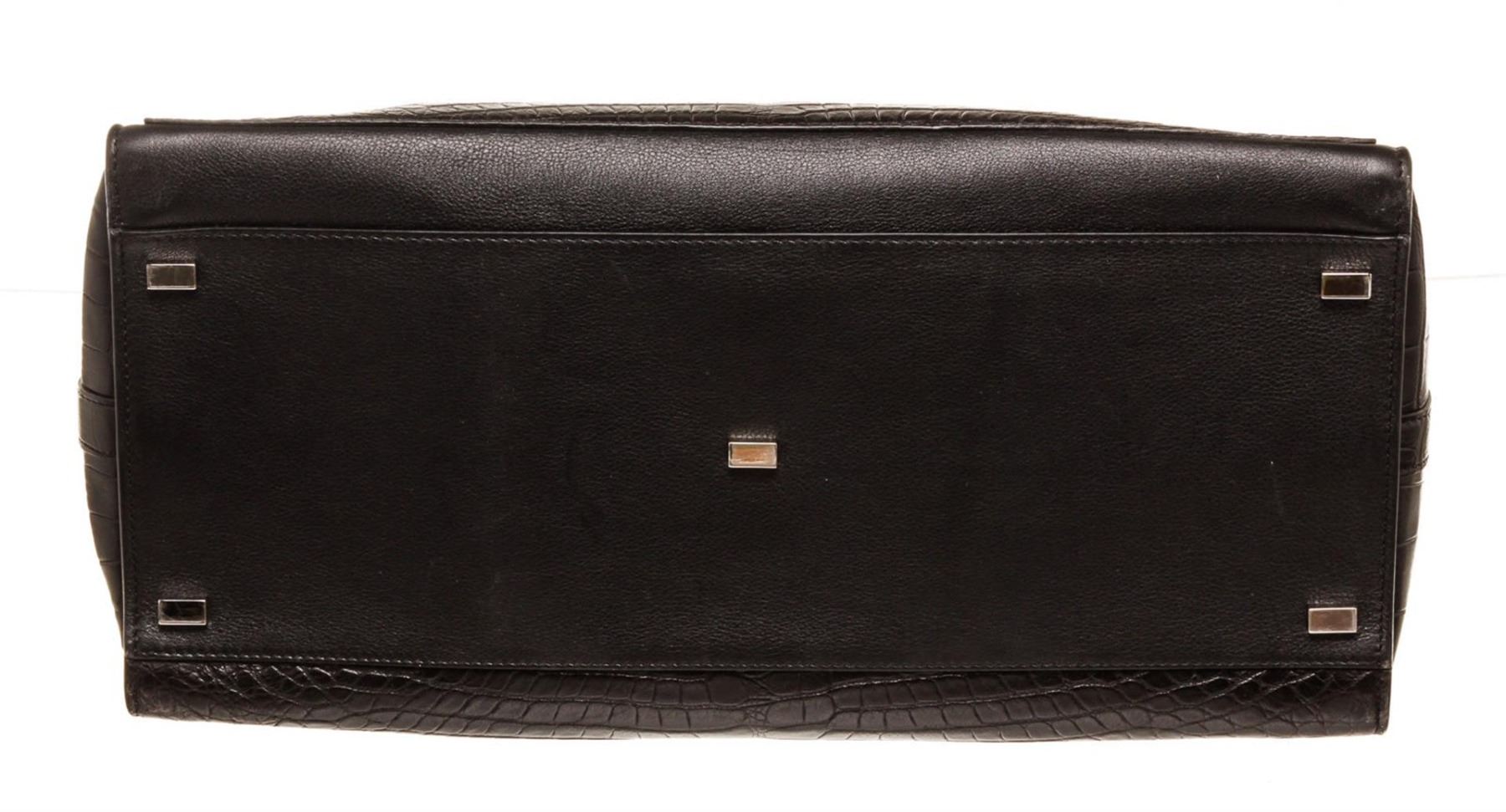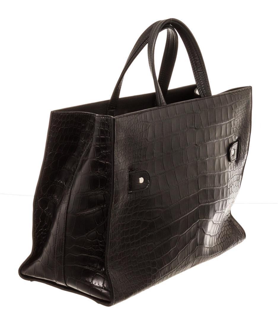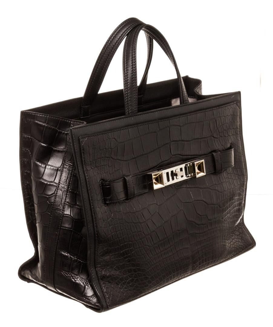 Proenza Schouler Tote Bag Tote Bag Black Croc. Brand: Proenza Schouler, Style: Tote Bag, Type: Tote Bag, Exterior Color: Black, Exterior Material: Croc, Exterior Pockets: None, Interior Color: Grey, Interior Material: Suede, Interior Pockets: One Zip, Closure: Zipper, Handle/Strap Type: Top Handle, Length: 7.5, Width: 4, Height: 7, Handle Drop: 8. Item is sold AS-IS and all information pertaining to this lot is available in the photos or this description.