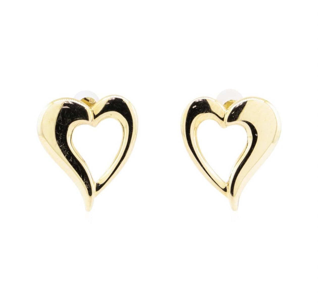 One pair of puffed heart motif earrings featuring: 14KT yellow gold weighing 1.0 gram.