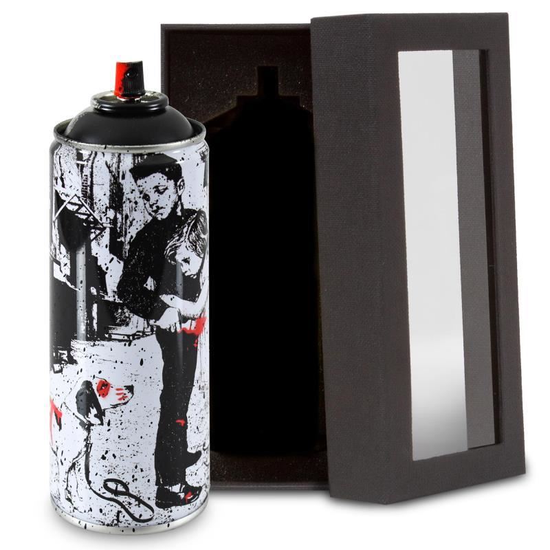 "Pup Art (Black)" is a numbered limited edition hand painted spray can by Mr Brainwash. This piece bears the plate signature of the artist and comes from his 2020 Classic Spray Can Collection. Measures approximately 2.5" x 7.5".