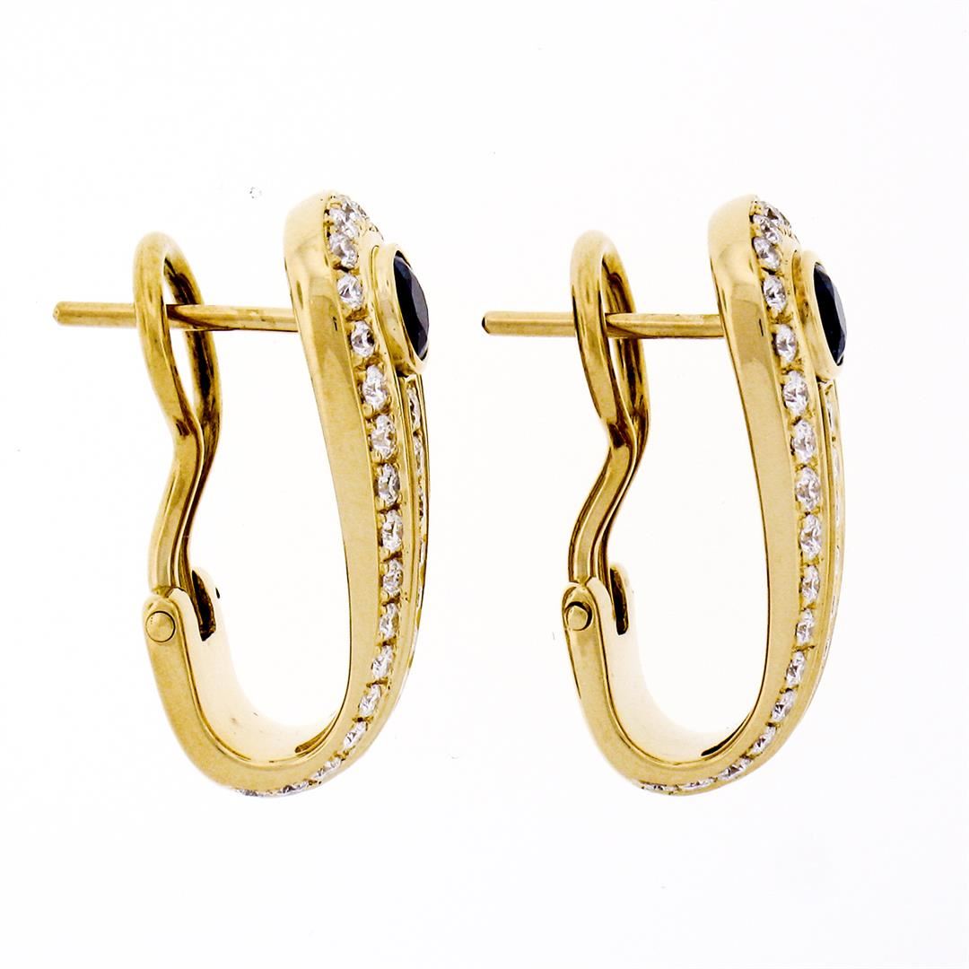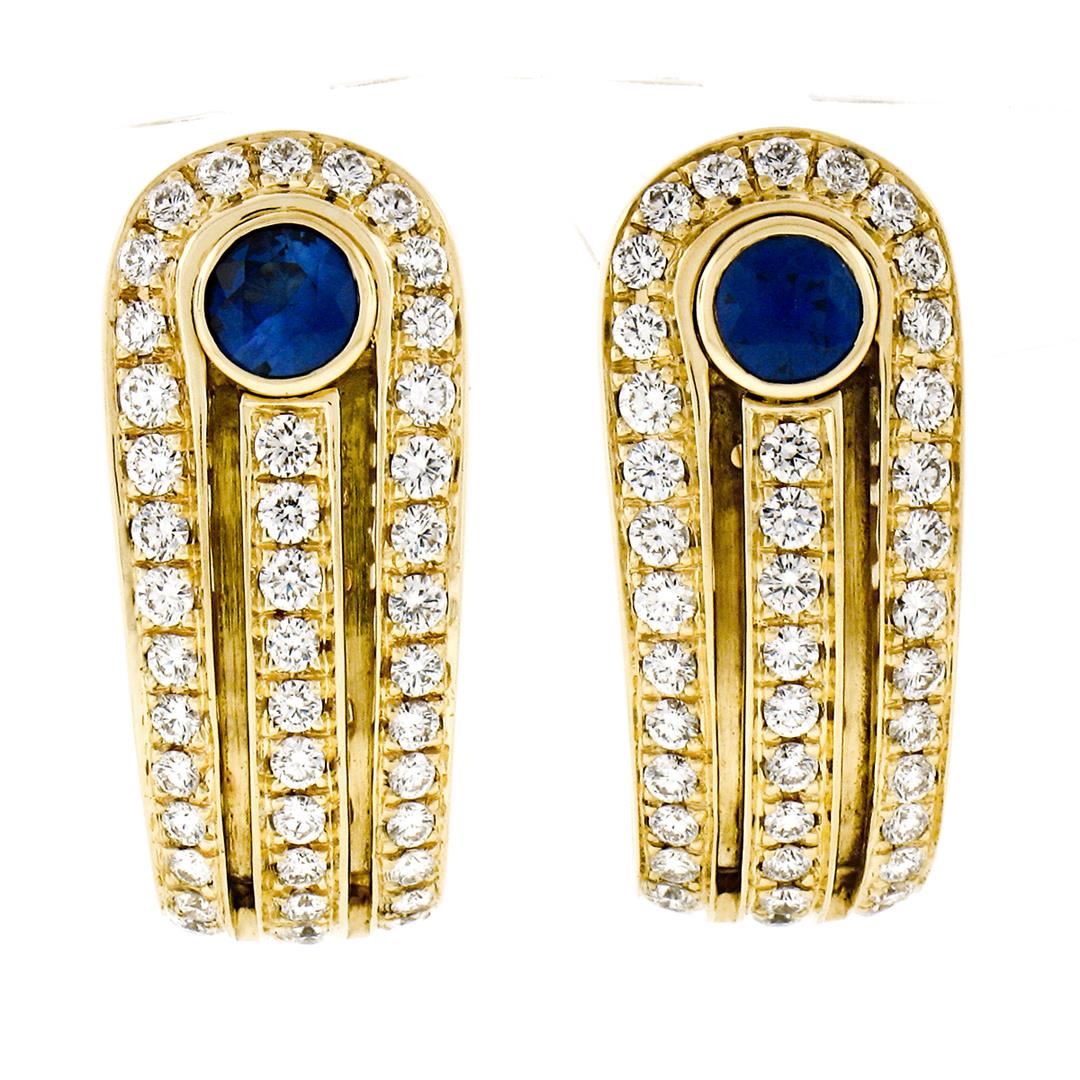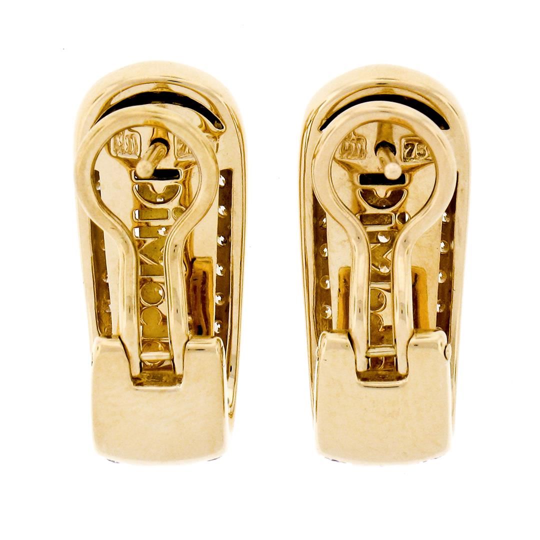 An estate solid 18k yellow gold cuff earrings by Di Modolo, featuring 2 round brilliant cut natural sapphires (0.80ctw), and 88 round brilliant cut natural diamonds (E/F - VVS1/VVS2 ; 1.10ctw). The earrings measure approximately 22.85x10mm and weigh a total of 11.67 grams.