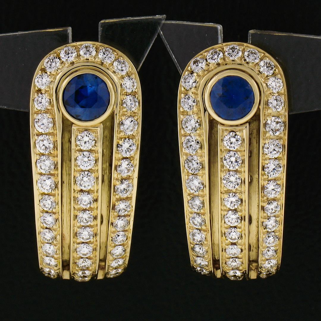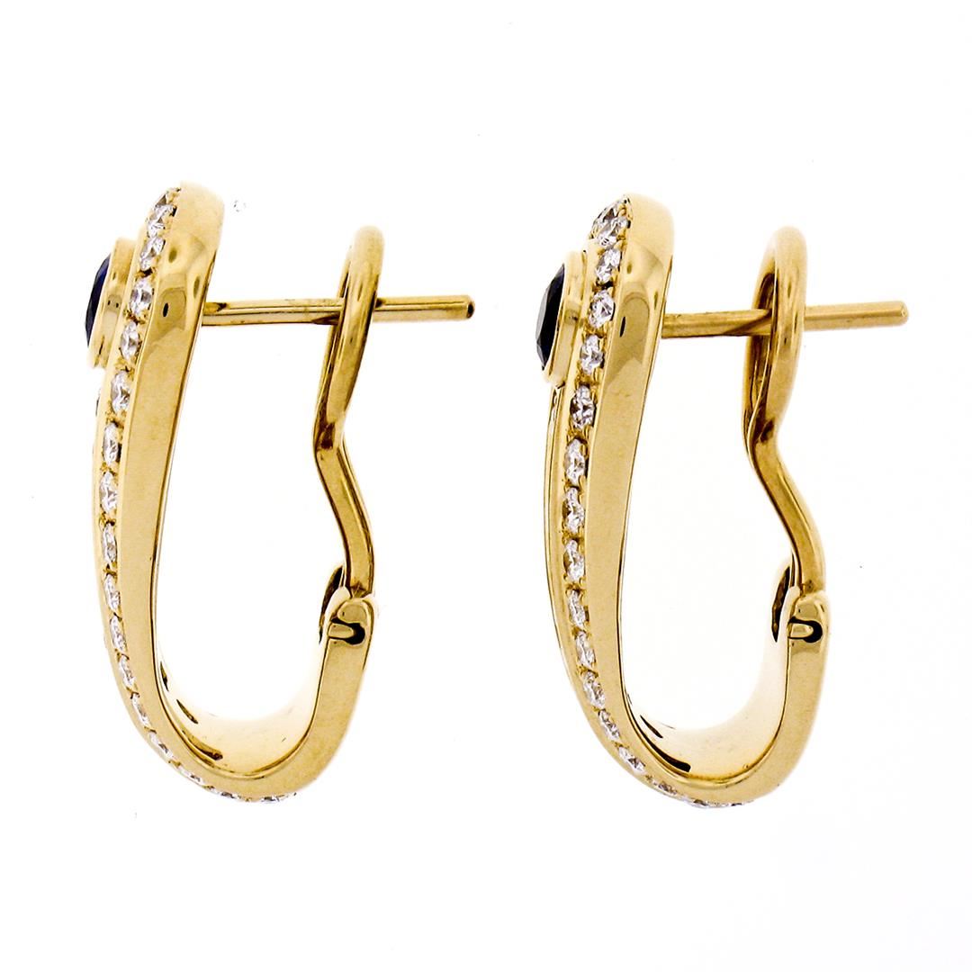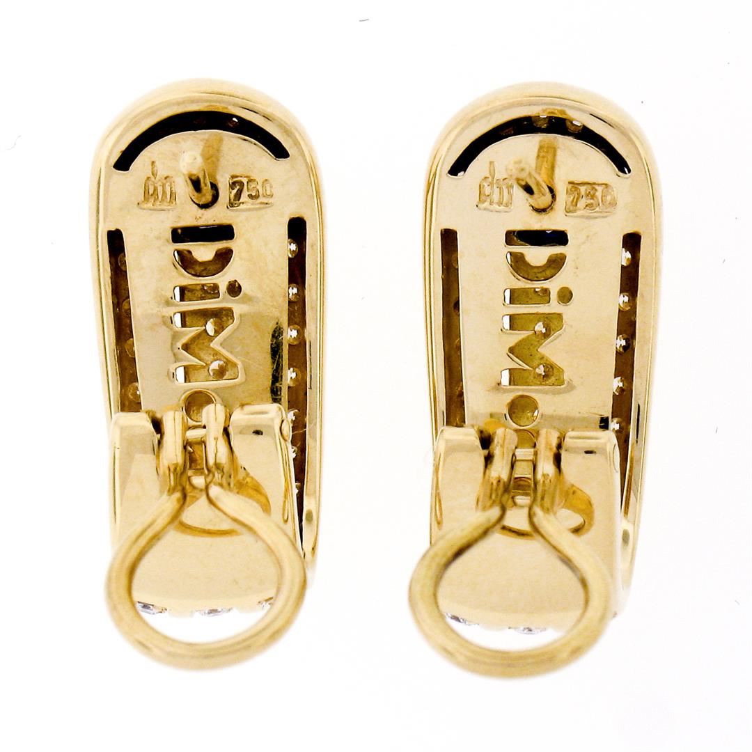 An estate solid 18k yellow gold cuff earrings by Di Modolo, featuring 2 round brilliant cut natural sapphires (0.80ctw), and 88 round brilliant cut natural diamonds (E/F - VVS1/VVS2 ; 1.10ctw). The earrings measure approximately 22.85x10mm and weigh a total of 11.67 grams.