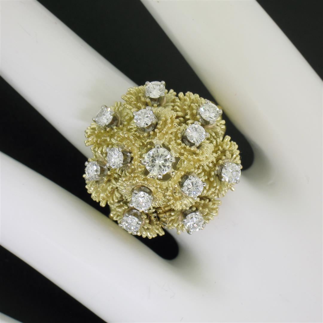 QUALITY Vintage 18K Gold 1.30 ctw Diamond Tiered Textured Cluster Cocktail Ring