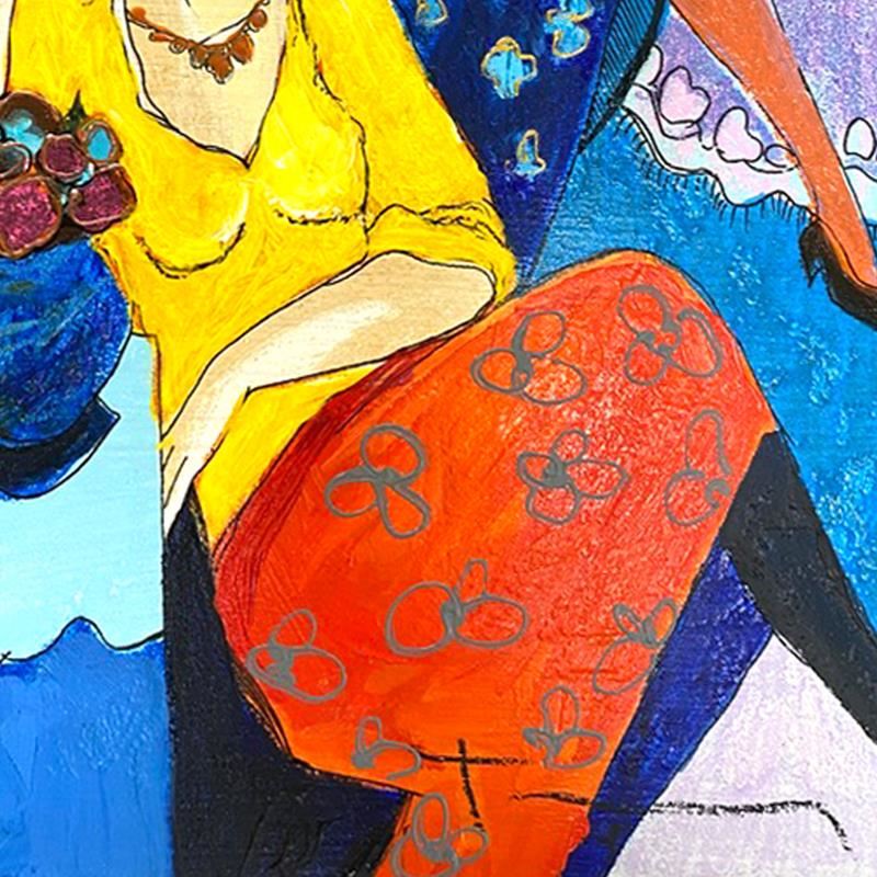 "Quiet Afternoon" is a one-of-a-kind mixed media over paint on wood by Itzchak Tarkay (1935-2012), hand signed by the artist. Includes Letter of Authenticity. Measures approx. 11.5" x 8" (image).