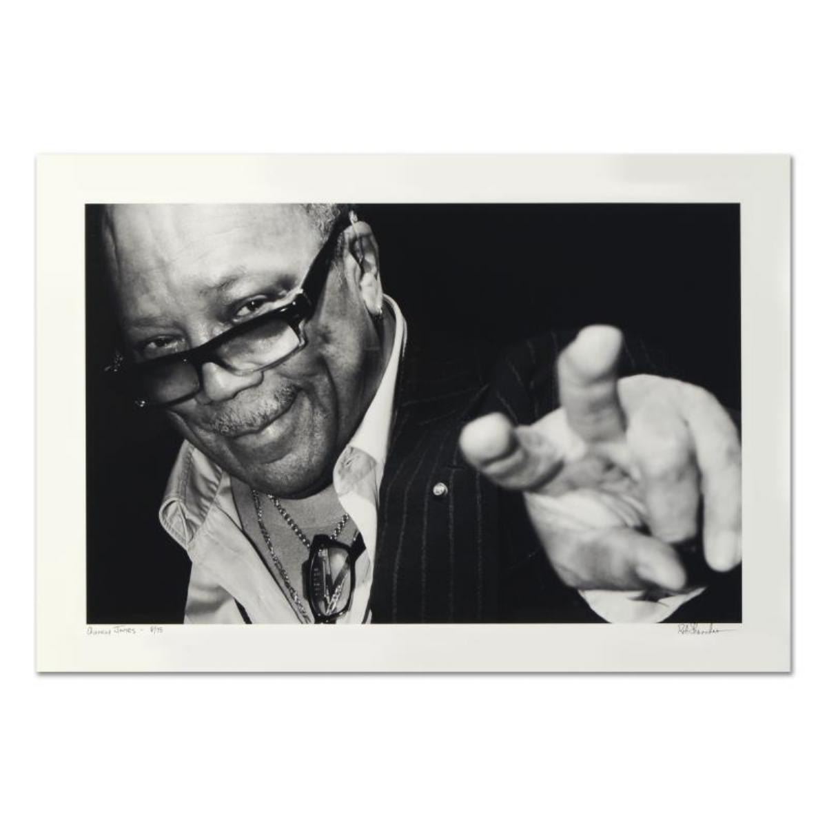 Quincy Jones by Shanahan, Rob. "Quincy Jones" is a limited edition giclee on paper, numbered and hand signed by acclaimed music industry photographer Rob Shanahan. Includes Certificate of Authenticity. Measures approximately 22" x 14.5" (image).